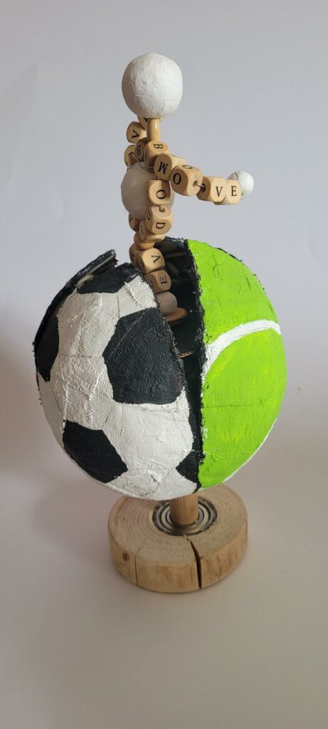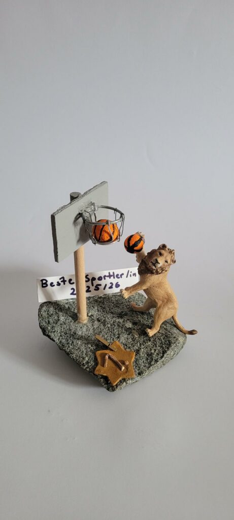 Ein Sprung ins kalte Wasser, per Stabhochsprung in ungeahnte Höhen oder mit Hanteltraining zum Erfolg – sportlich-kreative Höchstleistungen vollbrachte die Q13 bei ihrem Kunstprojekt „Es lebe der Sport“. Im Auftrag der Fachschaft Sport gestalteten die Schüler*innen in Designteams oder Einzelarbeit innovative und kreative Pokale für die Ehrung unseres/r Sportler*in des Jahres.
