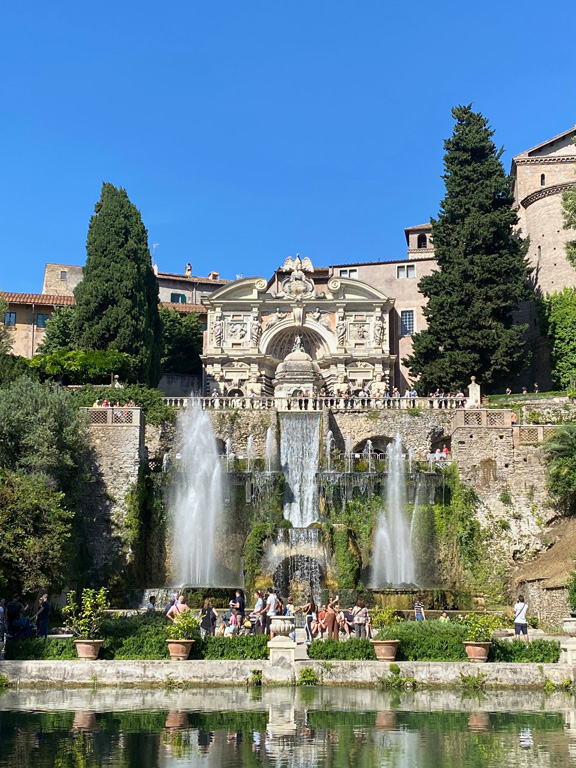 Gut ausgeruht kletterten wir am Montagmorgen wieder aus dem Bett; das war auch gut so, denn der Tag hielt einige Überraschungen bereit. Eigentlich geplant war die Besichtigung des Kolosseums und Forum Romanum, allerdings wurden beide Einrichtungen aufgrund des Nationalfeiertages („Festa della Repubblica“) für den Vormittag gesperrt. Die vielseitige erstmalige Enttäuschung verflog schnell, den stattdessen kamen wir nun in den Genuss einer beeindruckend gestalteten Militärparade mit viel Musik und fröhlicher Stimmung. Wir verfolgten die Parade für ca. eine Stunde und begaben uns dann einzeln auf die Suche nach einem Lokal fürs Mittagessen. Nachmittags stand eine längere Busfahrt an: wir machten uns auf den Weg nach Tivoli, wo die wunderschöne Villa d’Este auf uns wartete. In kleinen Gruppen wanderten wir über das große Gelände, bestaunten die Kunstwerke im Innenbereich, genossen das liebevoll gestaltete Parkgelände oder holten uns an den zahlreichen Brunnen eine wohltuende Abkühlung. Zum Abendessen ging es nach Frascati, wo wir alle die köstlichen Gerichte und manche auch ein Gläschen des noch köstlicheren sehr berühmten Weines genossen. Ein passender Abschluss für einen wunderbar gestalteten Tag!