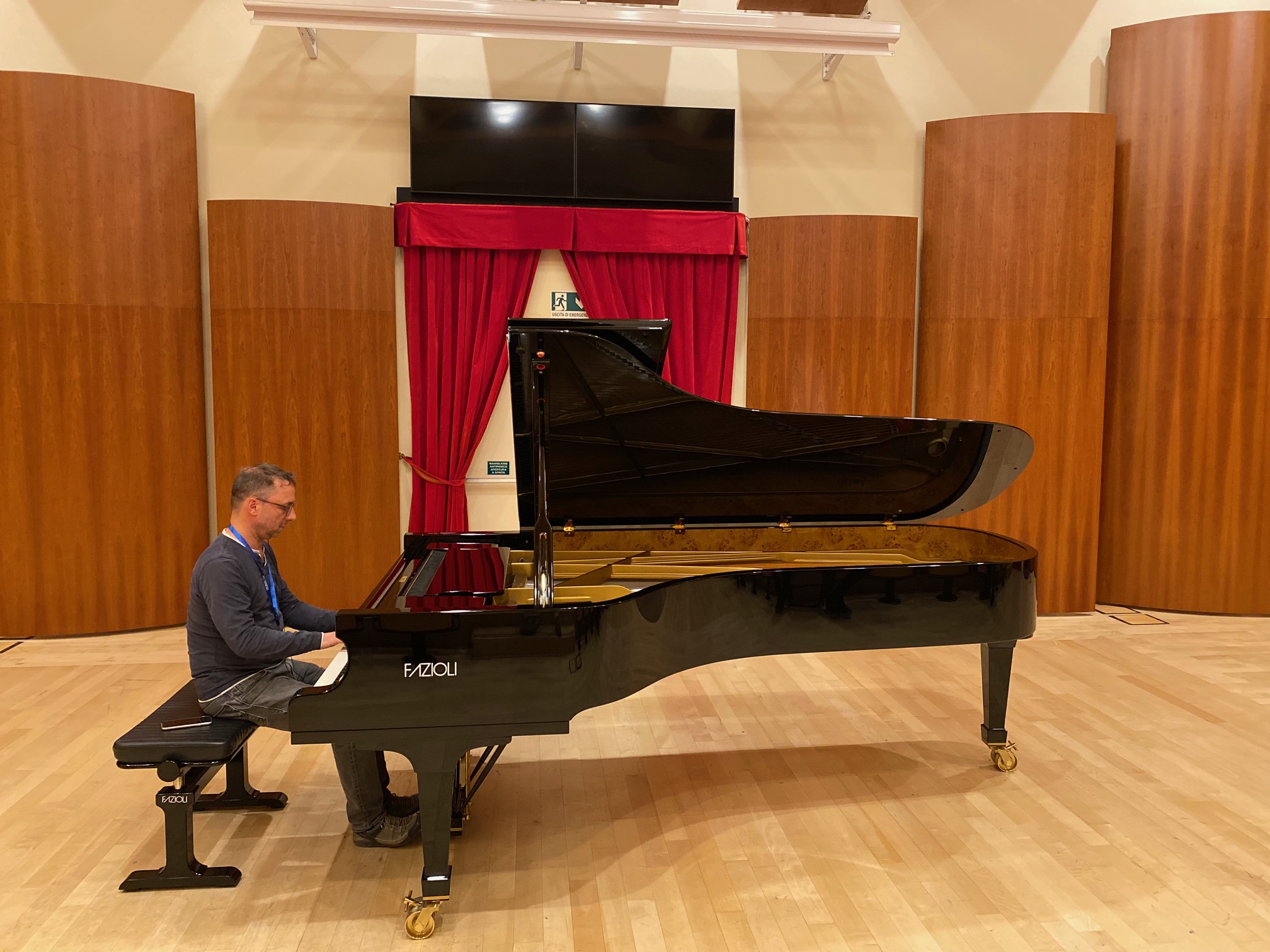 Herr Würfl erklärte uns die Unterschiede zwischen gotischen und venezianischen Fenstern, bei denen nicht nur die Form, sondern auch die bauliche Wirkung eine Rolle spielt. Gotische Fenster erkennt man an ihrer spitz zulaufenden Form, die dem Bauwerk eine klare vertikale Ausrichtung verleiht. Diese Fensterform ist nicht nur optisch markant, sondern auch besonders stabil, da der Spitzbogen die Last gleichmäßig zur Seite ableitet und so den Bau hoher und schlanker Gebäude überhaupt erst ermöglicht. Venezianische Fenster hingegen, die man häufig in Palästen findet, sind rundbogig gestaltet und wirken durch ihre symmetrische Anordnung in Dreiergruppen sehr ausgewogen und elegant. Obwohl sie auf den ersten Blick massiver erscheinen, sind sie statisch weniger effizient als die gotischen Fenster. Umso erstaunlicher war für viele von uns die Erkenntnis, dass ausgerechnet die zierlich wirkende Spitzbogenform die stabilere Bauweise darstellt. Nach dieser ersten kulturellen Begegnung mit italienischer Architektur ging es weiter nach Sacile, wo wir in unser Hotel fuhren. Für eine Teilgruppe stand jedoch noch ein weiteres Highlight an: der Besuch der Fazioli-Klaviermanufaktur. Dass der Gründersohn Luca Fazioli persönlich die Führung übernahm, verlieh dem Ganzen einen exklusiven Rahmen. Wir bekamen Einblick in die komplexe Welt des Klavierbaus, das heißt von feinster Handarbeit über computergestützte Präzisionsarbeit bis hin zur individuellen Klangabstimmung. Es wurde schnell klar, dass ein Fazioli-Klavier kein Serienprodukt ist, sondern ein individuelles Charakterstück. Besonders spannend war der Vergleich der unterschiedlichen Modelle. Wir sahen unter anderem einen Flügel mit einer mittleren Länge von zwei Metern, der durch seinen großen Dynamikbereich überzeugt, ideal für anspruchsvolle Pianisten. Aber schließlich auch das größte Modell, der F308, mit einer Länge von 3,02 Metern und einem Gewicht von 560 Kilogramm. Er wurde speziell für sehr große Konzertsäle konzipiert und besitzt ein von Fazioli entwickeltes viertes Pedal. Dieses zusätzliche Pedal senkt die Steighöhe der Hämmer und damit die Lautstärke, ohne die Klangfarbe zu verändern. Gleichzeitig verbessert es das Spielgefühl bei Glissandi, Pianissimo- und Legatopassagen, was selbst viele Pianistinnen und Pianisten überrascht hat. Einige aus unserer Gruppe durften im hauseigenen Konzertsaal sogar kurz selbst spielen. Für sie ein besonderer Moment, an einem Ort spielen zu dürfen, an dem sonst Preisträger internationaler Wettbewerbe auftreten. Abends kamen wir wieder als ganze Gruppe zusammen, aßen gemeinsam im Hotel und ließen den Tag ruhig ausklingen.