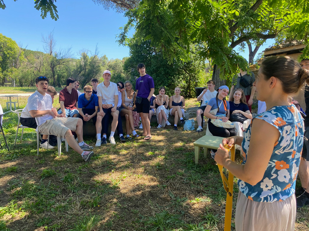 Am Freitag setzte sich unsere Fahrt weiter in den Süden fort. Nachdem wir am Vormittag das Hotel verlassen hatten, fuhren wir in Richtung Adriaküste, wo wir gegen Mittag den Strand von Ravenna erreichten. Ursprünglich war ebenso ein Stadtrundgang durch Ravenna vorgesehen, der jedoch nicht wie geplant stattfand, da wir aufgrund von Staus deutlich später als gedacht ankamen. Deshalb beschlossen die begleitenden Lehrkräfte, auf das eng getaktete Besichtigungsprogramm zu verzichten und stattdessen mehr Zeit am Meer zu ermöglichen, was sich als sinnvoll erwies, da es uns die Gelegenheit gab, ohne Eile zur Ruhe zu kommen und den Moment wirklich zu genießen. Gemeinsam kauften wir Verpflegung für ein Picknick ein, breiteten Decken am Strand aus und verbrachten einen entspannten Nachmittag direkt am Wasser. Einige von uns gingen ins Meer, andere lagen in der Sonne. Es war ein fast schon idyllischer Abschnitt der Fahrt, der im Kontrast zu den kommenden Tagen stand, die deutlich intensiver und städtischer geprägt sein sollten. Am späten Nachmittag setzten wir unsere Reise fort und erreichten schließlich am Abend Rom. Dort verbrachten wir noch ein gemeinsames Abendessen in der Nähe des Hotels, woraufhin leider einige bemerkten, dass in den Bus eingebrochen worden war und persönliche Gegenstände gestohlen wurden. Trotz der Aufregung zeigte sich schnell, dass man zusammen jedoch eine Lösung für alles finden konnte.