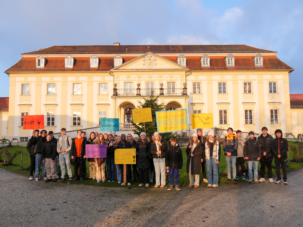 Der Rat freier Schulen (RFS), der alle Privatschulverbände Bayerns bündelt, will die permanente Benachteiligung privater Schulen gegenüber staatlichen Schulen nicht mehr mitmachen. Eine große Kundgebung letzten Mittwoch auf dem zentralen Münchner Königsplatz sollte unter dem Motto „Wir melden uns“ auf die Ungleichbehandlung der privaten Schulen hinweisen. Das Passauer Auersperg-Gymnasium folgte dem Aufruf des RFS und fuhr mit zwei neunten Klassen in Begleitung ihrer Lehrkräfte Monika Fecher, Hans-Peter Ritzer und Markus Viol in die Landeshauptstadt. Mit Transparenten machten auch diese rund 50 Freudenhainer auf sich aufmerksam und forderten mehr Gerechtigkeit bei der Schulfinanzierung.