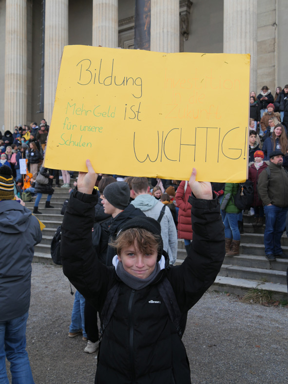 Insgesamt 200.000 Schüler besuchen in Bayern eine freie Schule, das heißt, jeder fünfte Schüler ist ein Schüler einer Privatschule in kirchlicher oder freier Trägerschaft. Schätzungsweise 13.000 davon waren auf dem Königsplatz versammelt. Auch die Realschulen Neuhaus und Burghausen, die wie Freudenhain der Maria-Ward-Schulstiftung Passau angehören, waren auf der Kundgebung vertreten.
