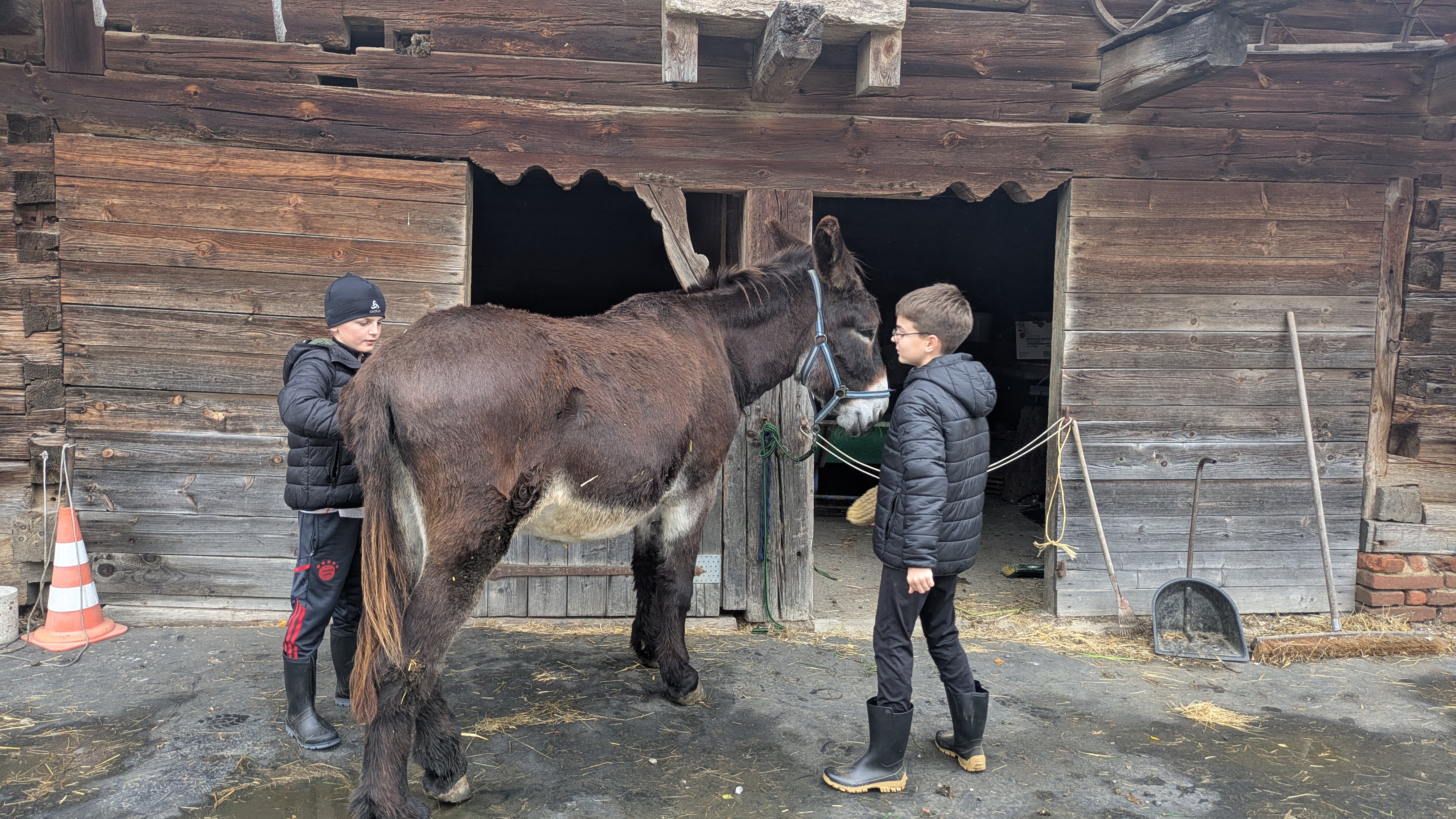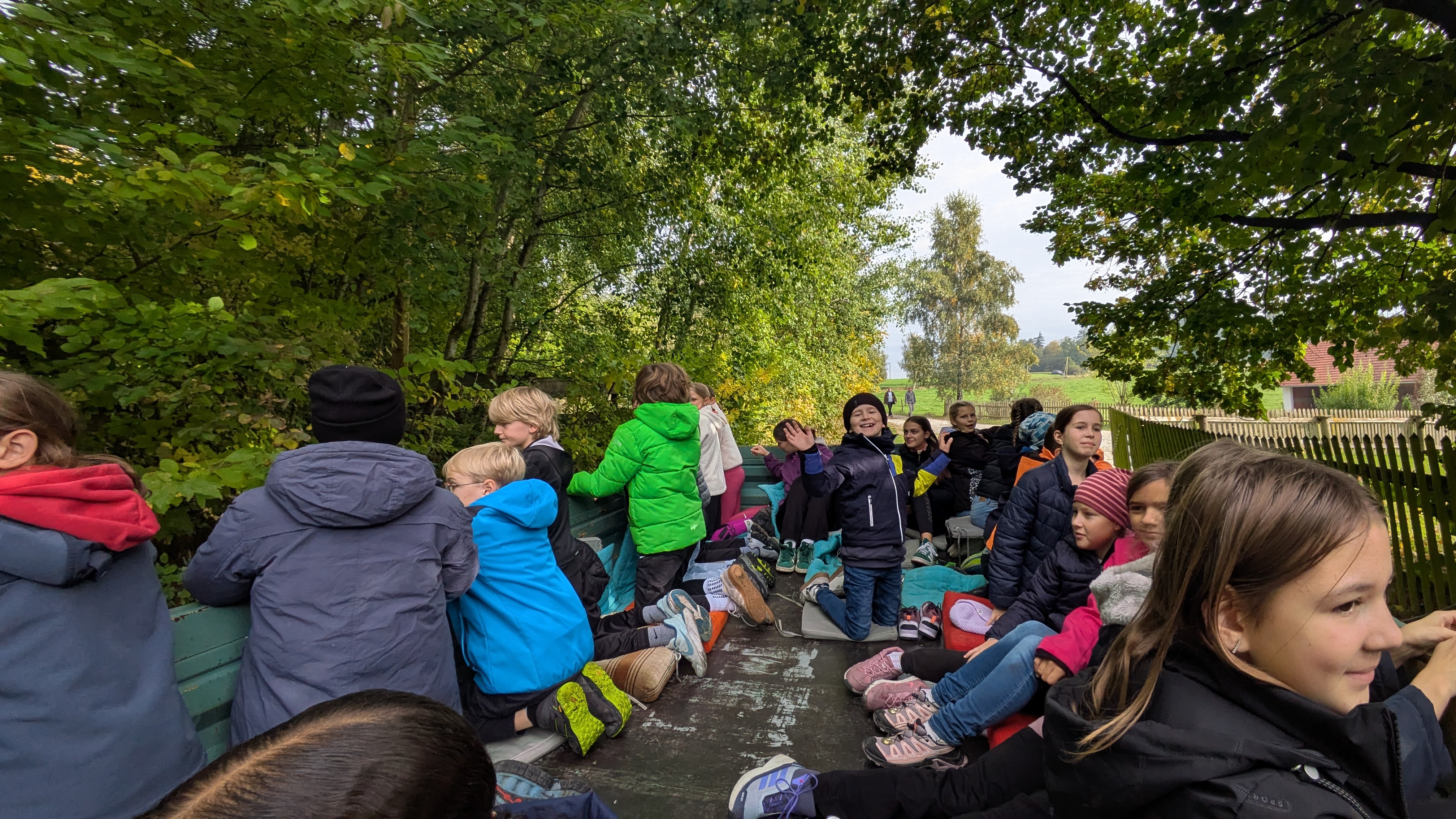 Als erste der drei neuen 5. Klassen verbrachte die 5b drei abwechslungsreiche Kennenlerntage auf dem Bauernhof der Familie Mödder in Wiesbach bei Gangkofen. Die Schülerinnen und Schüler wurden von den beiden Lehrkräfte Janina Fast und Henrik von Rosenberg-Lipinsky sowie den Tutorinnen Nina, Anna und Hanna aus den 10. Klassen begleitet. Das bunte Programm überzeugte selbst die zutiefst Heimwehgeplagten, über sich hinauswachsen durften. Die Kinder erfreuten sich besonders an den vielen Tieren, die sie streicheln und auf den Arm nehmen durften. Die überwiegende Mehrheit genoss den aufregenden Reitnachmittag, an dem sie auf Esel und Pferd reiten durften.