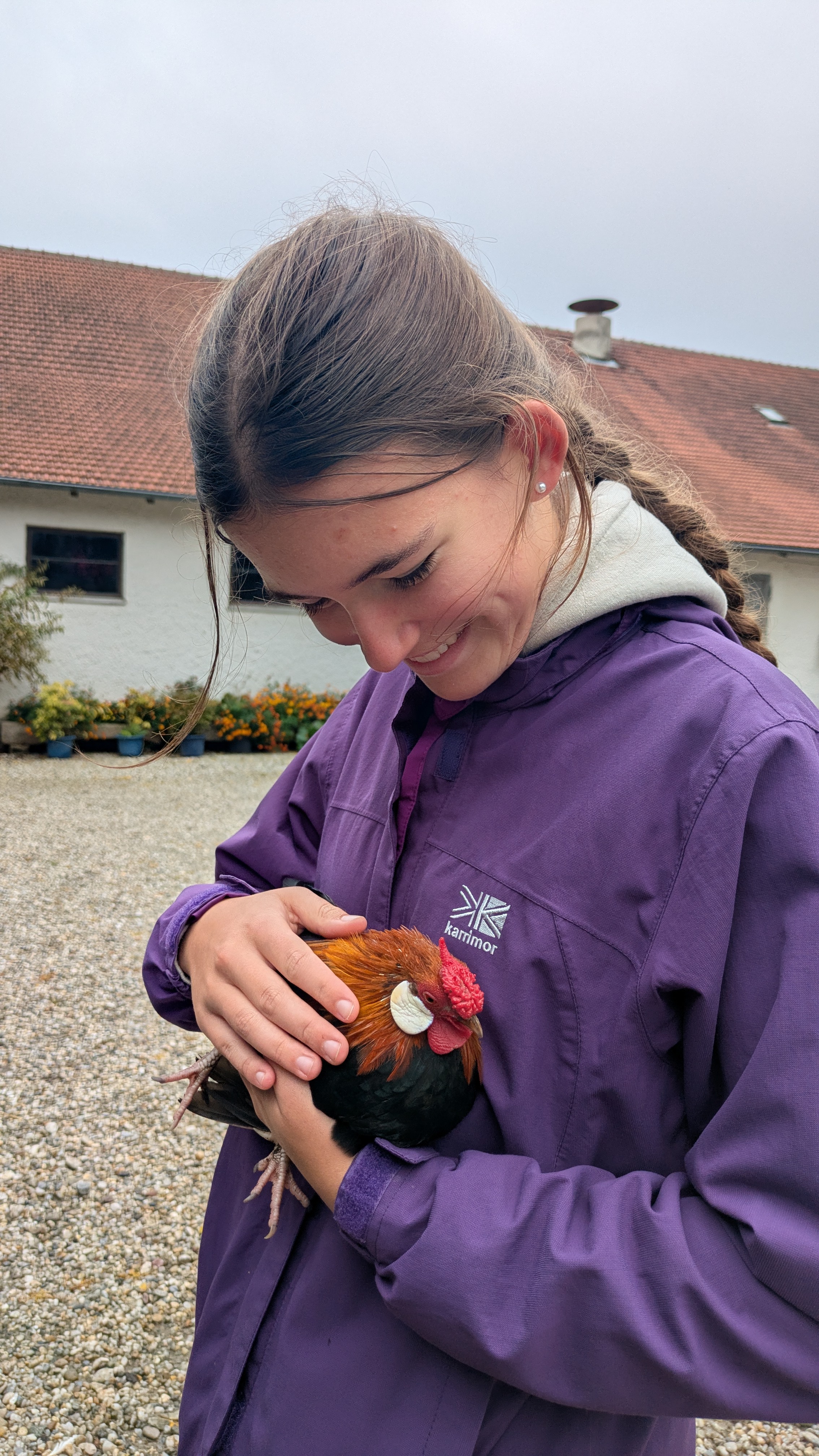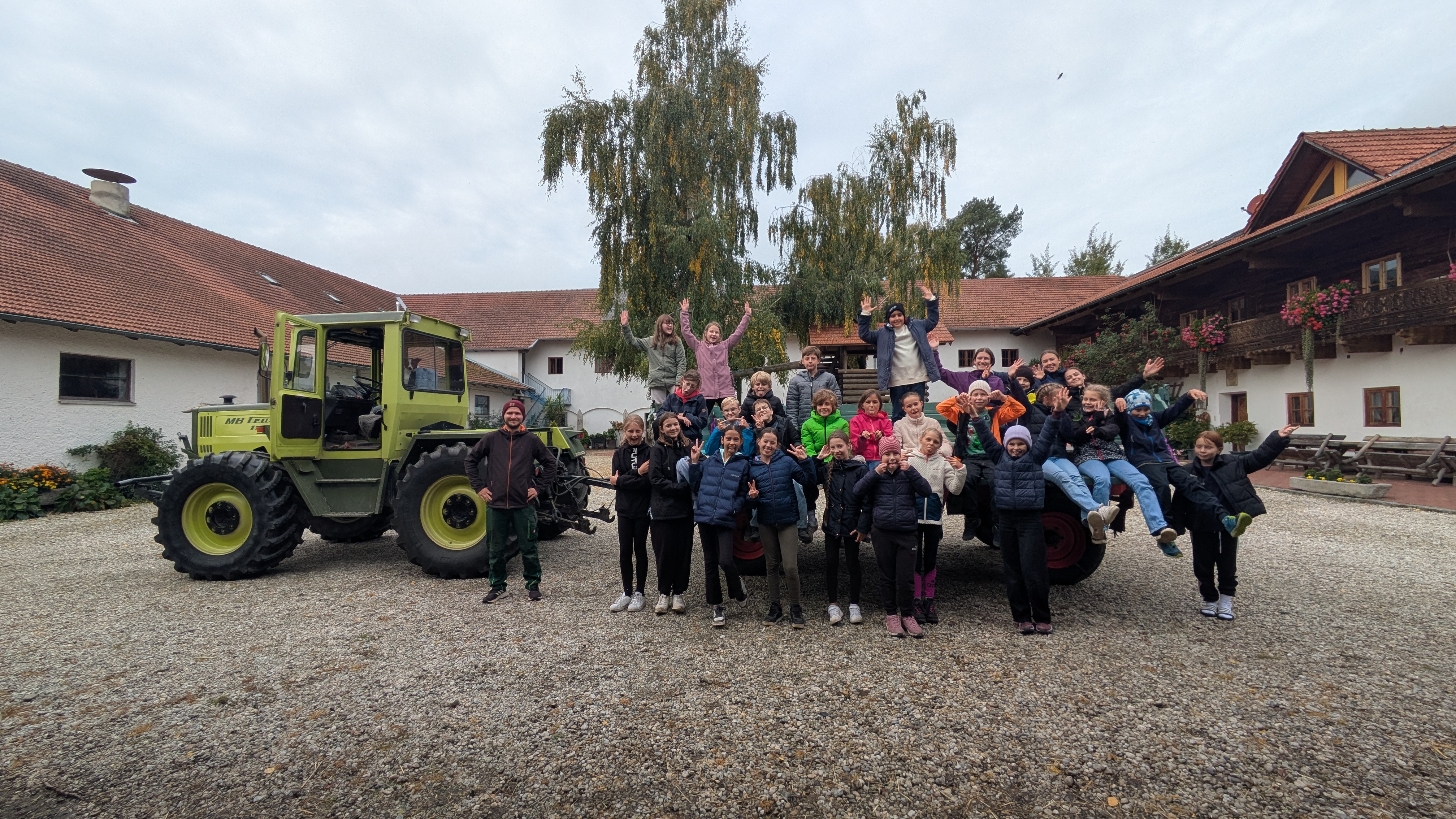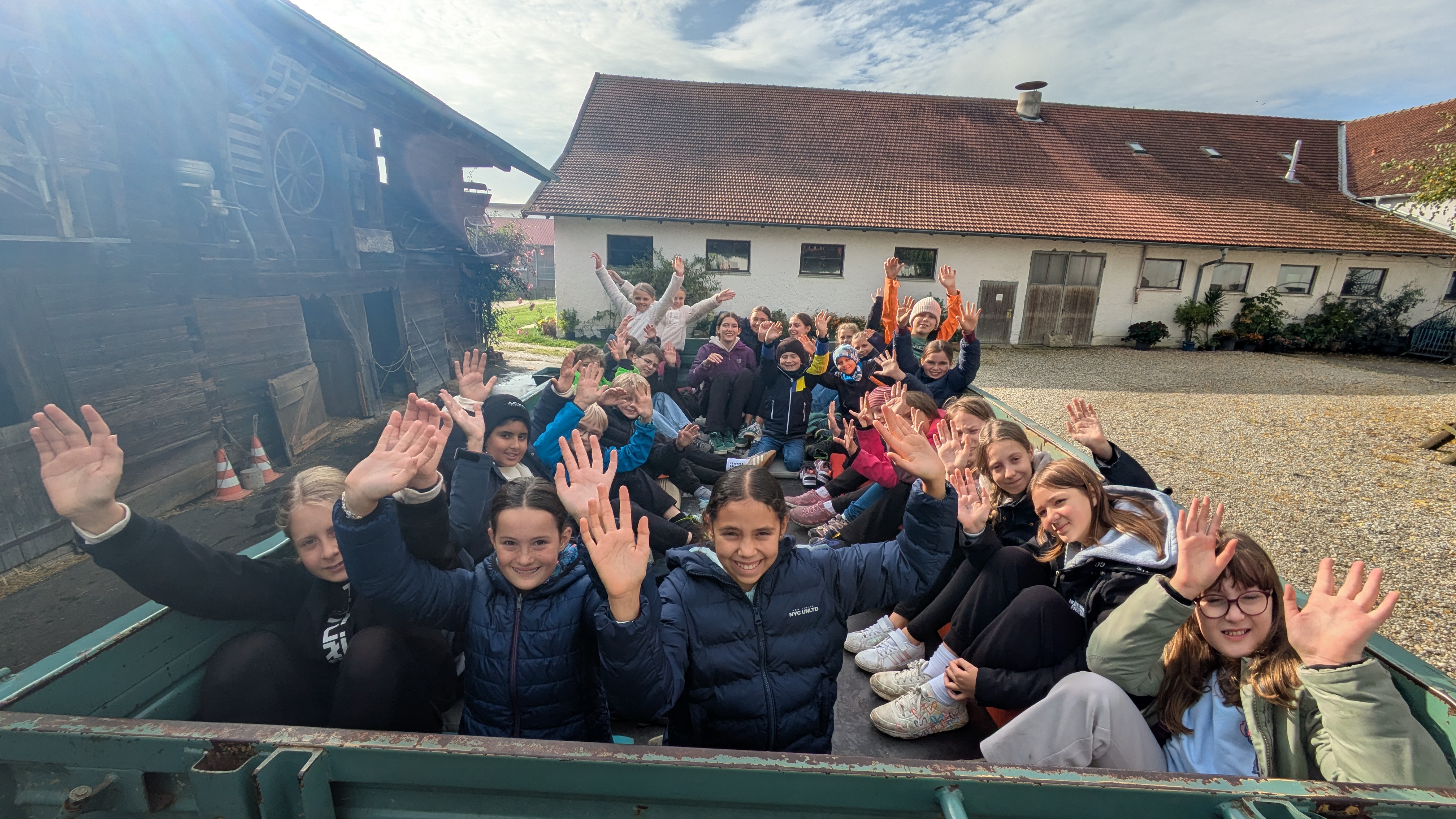 PXL 20251007 072951007MPAls erste der drei neuen 5. Klassen verbrachte die 5b drei abwechslungsreiche Kennenlerntage auf dem Bauernhof der Familie Mödder in Wiesbach bei Gangkofen. Die Schülerinnen und Schüler wurden von den beiden Lehrkräfte Janina Fast und Henrik von Rosenberg-Lipinsky sowie den Tutorinnen Nina, Anna und Hanna aus den 10. Klassen begleitet. Das bunte Programm überzeugte selbst die zutiefst Heimwehgeplagten, über sich hinauswachsen durften. Die Kinder erfreuten sich besonders an den vielen Tieren, die sie streicheln und auf den Arm nehmen durften. Die überwiegende Mehrheit genoss den aufregenden Reitnachmittag, an dem sie auf Esel und Pferd reiten durften.
