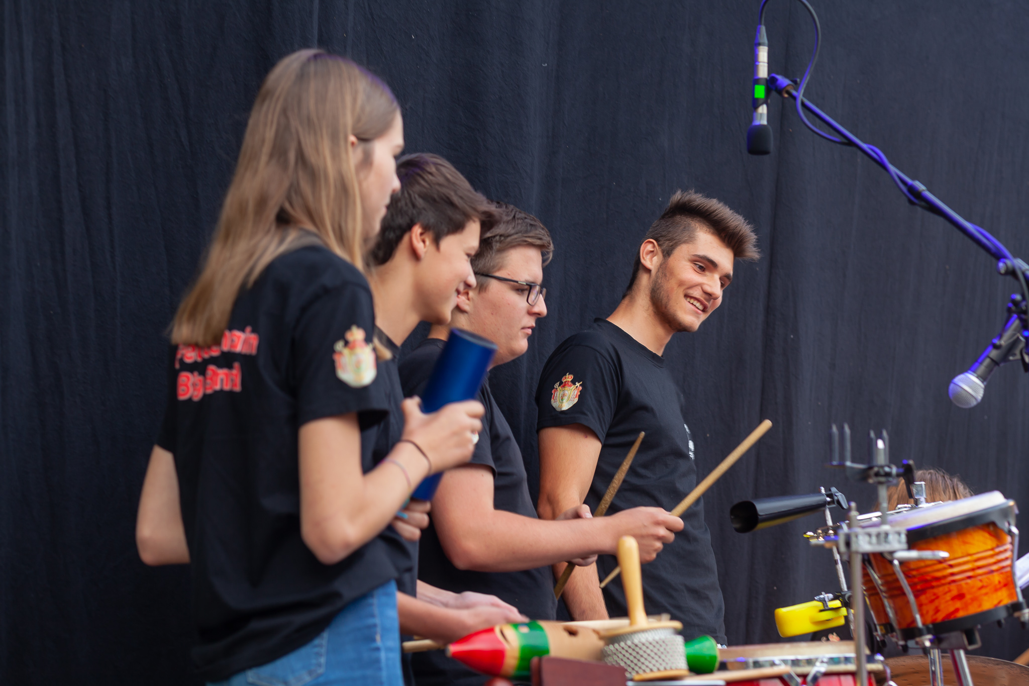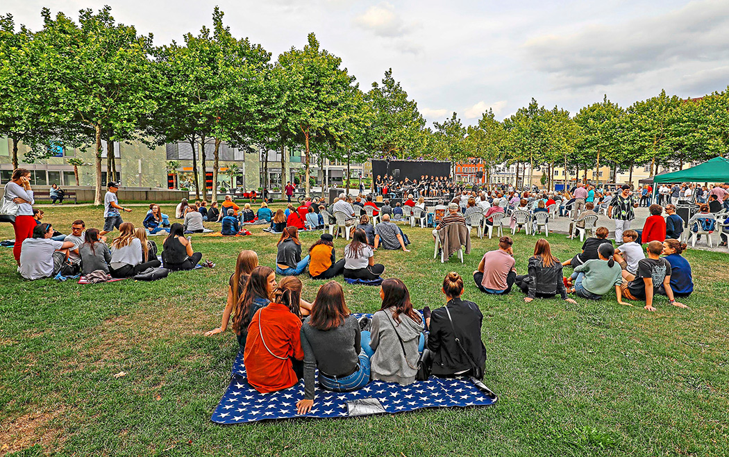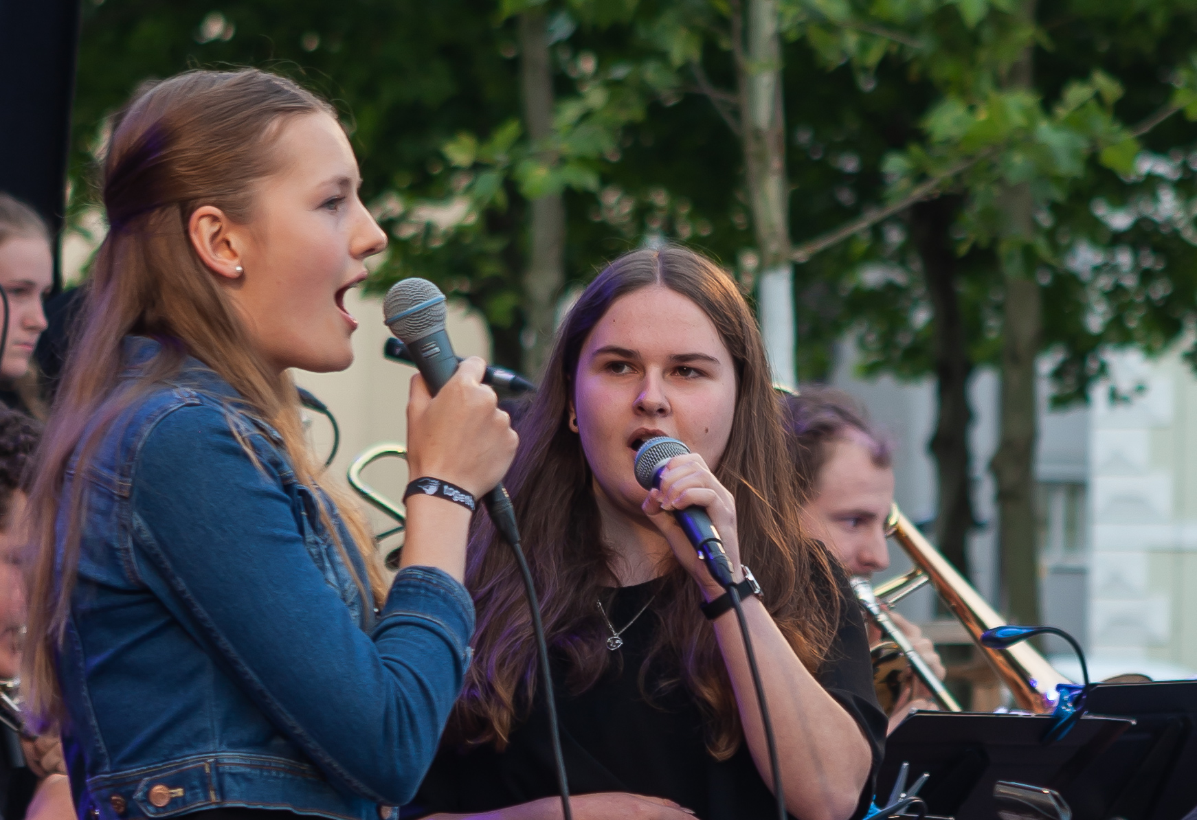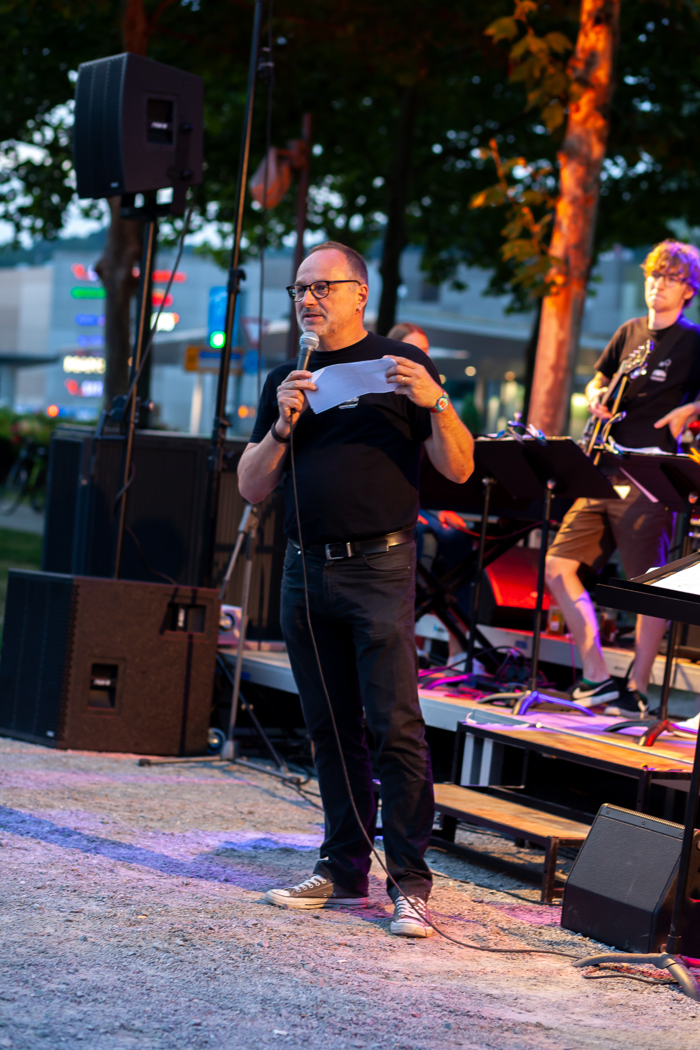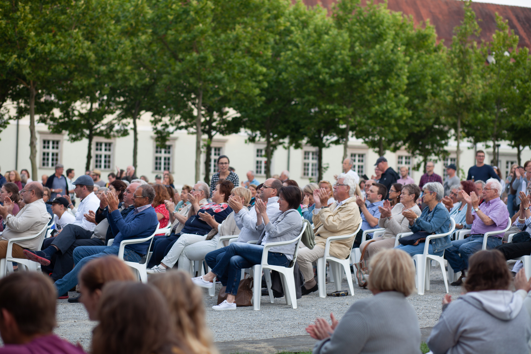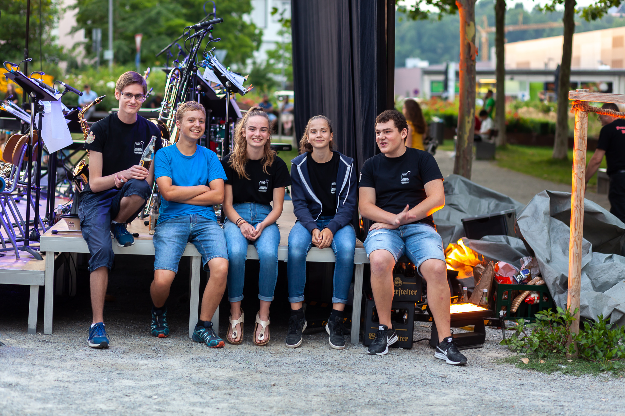 Großer Tag für die Big Band: Bei der „Blue night“ am Montagabend machte das Gymnasium Freudenhain wieder einmal seine musische Ausrichtung deutlich. Das Besondere daran ist der Ort, denn nicht hinter den schützenden Mauern des Schul-Schlosses präsentieren sich die Schüler-Musiker, sondern an einem der öffentlichsten Orte der Stadt, im Klostergarten. Damit ist klar, dass nicht nur Eltern, Geschwister und andere Angehörige im Publikum sitzen, sondern auch Passanten, fremde Zuhörer also. Umso höher steigt natürlich die Herzfrequenz bei den Schülern auf der Bühne, vor allem denen, die zum ersten Mal in der Big Band mitspielen. „Es müssen sich aber alle trauen zu improvisieren, auch die Neuen“, verrät Bandleader Christoph Rose ein Grundprinzip. Den Weg zum Selbstvertrauen meisterte denn auch jeder.