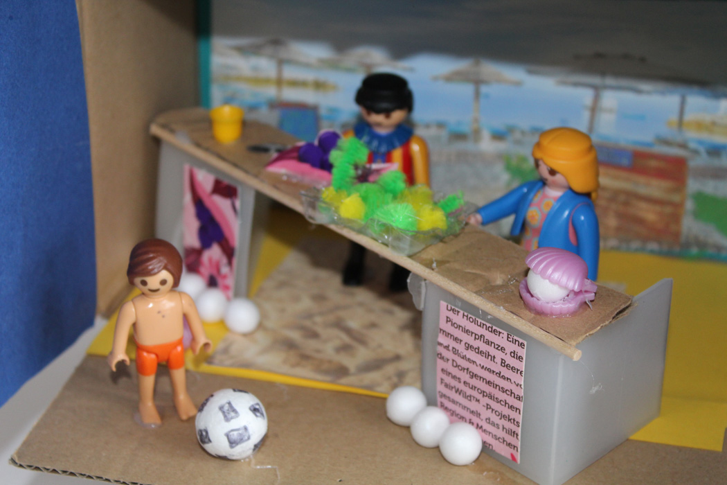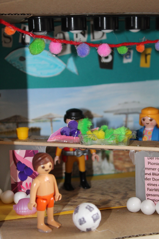 Dabei entstanden ganz unterschiedliche Essenssituationen, und für die Materialbeschaffung wurde schon mal die Spielzeugkiste geplündert. Die Ideen wurden in handlichem Päckchenformat in einer Pappbox umgesetzt und sind seit letzter Woche nun auch „live“ im Neubau zu bewundern.