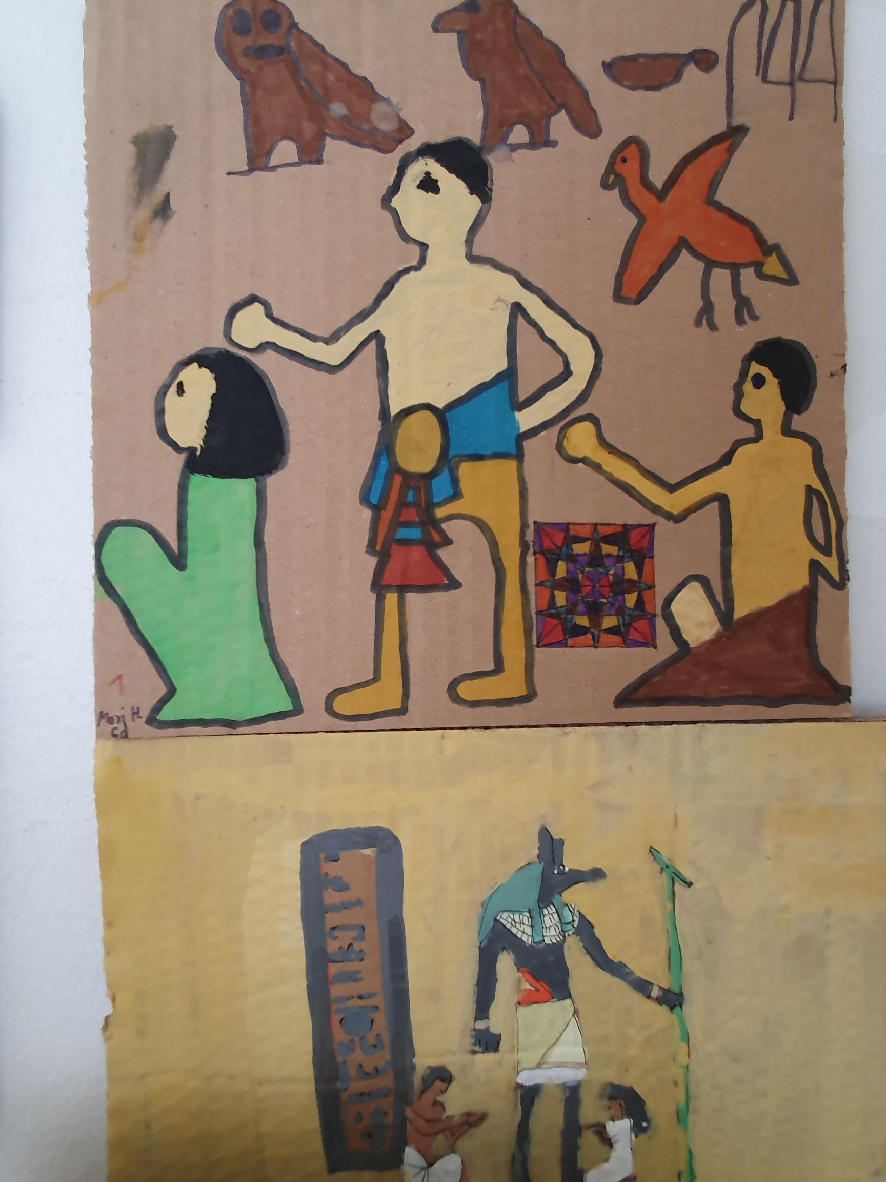 … kann man derzeit im Engelhaus unternehmen. Die Klassen 5a und 6d haben sich mit der Altägyptischen Kunst auseinandergesetzt und nehmen uns mit ins Land der Pharaonen und Pyramiden.