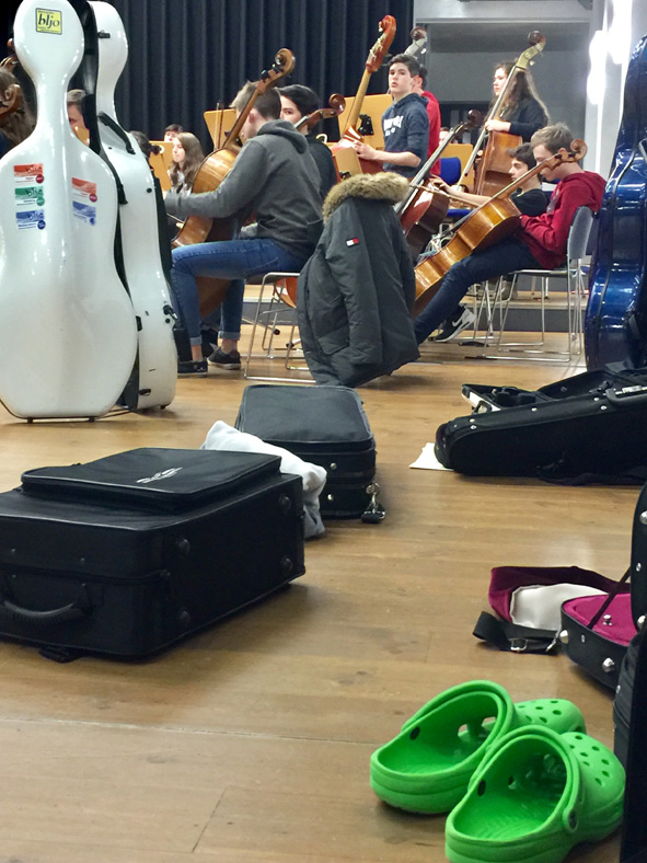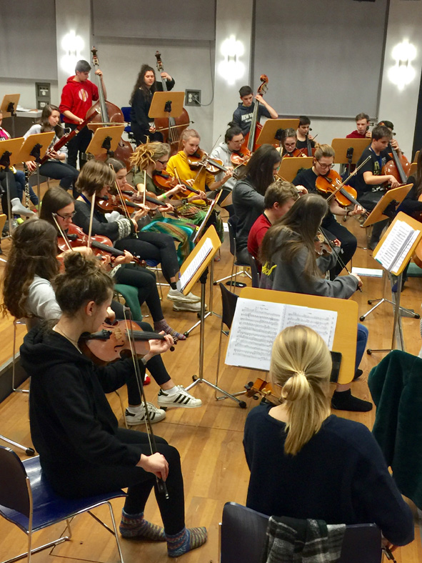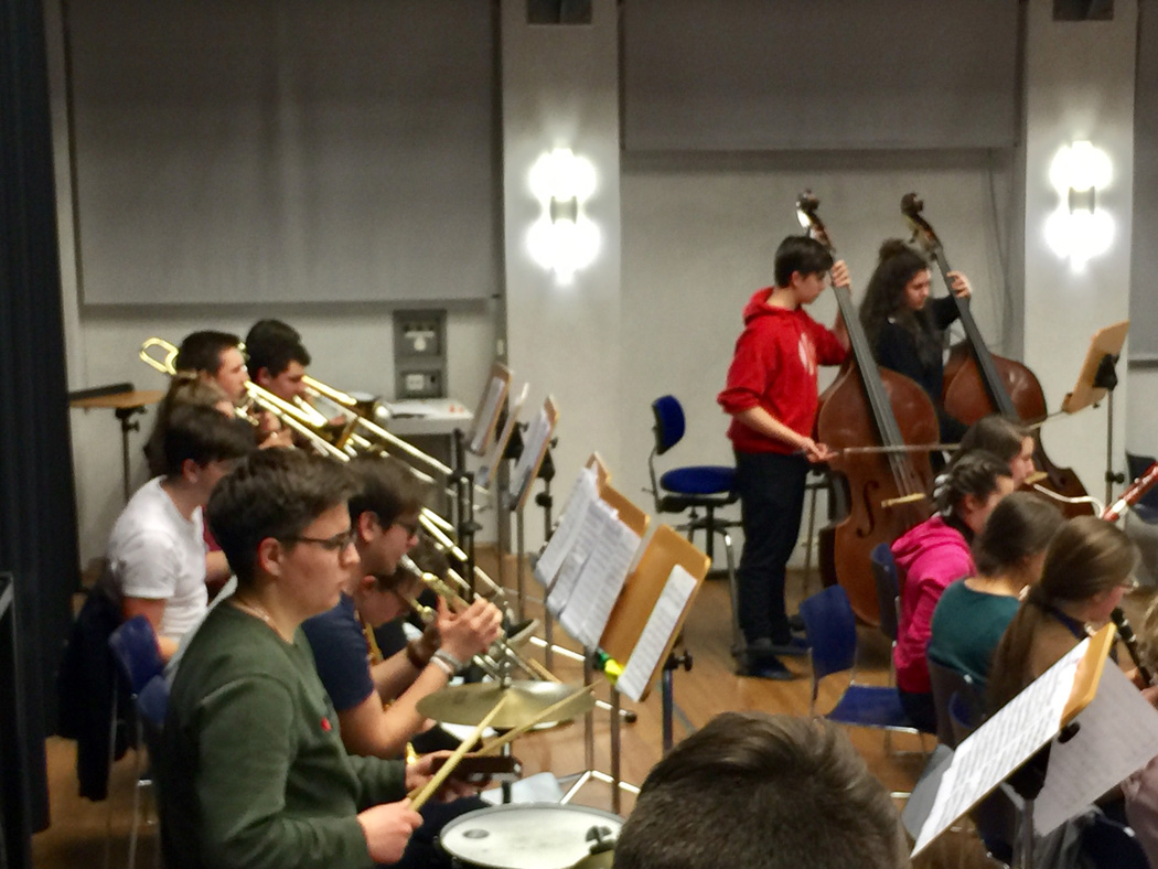 Das Orchester bereitete in großer Bläser- und Schalgwerkbesetzung Werke für das Faschingskonzert vor und erfüllte mit beschwingten Werken die Räume und beflügelte die Schüler. Die Bigband erweiterte ihr großes Repertoire mit Improvisationen . In der ersten Hälfte der Woche war neben der Probenarbeit für das Unter- und Mittelstufenorchester auch die Theatergruppe 6-10 unter Leitung von Ursula Kraft mit vollem Einsatz für ihre nächste Aufführung in Aktion. Trotz all der musischen Aktivitäten kam jedoch auch das Gesellige und die soziale Komponente nicht zu kurz!