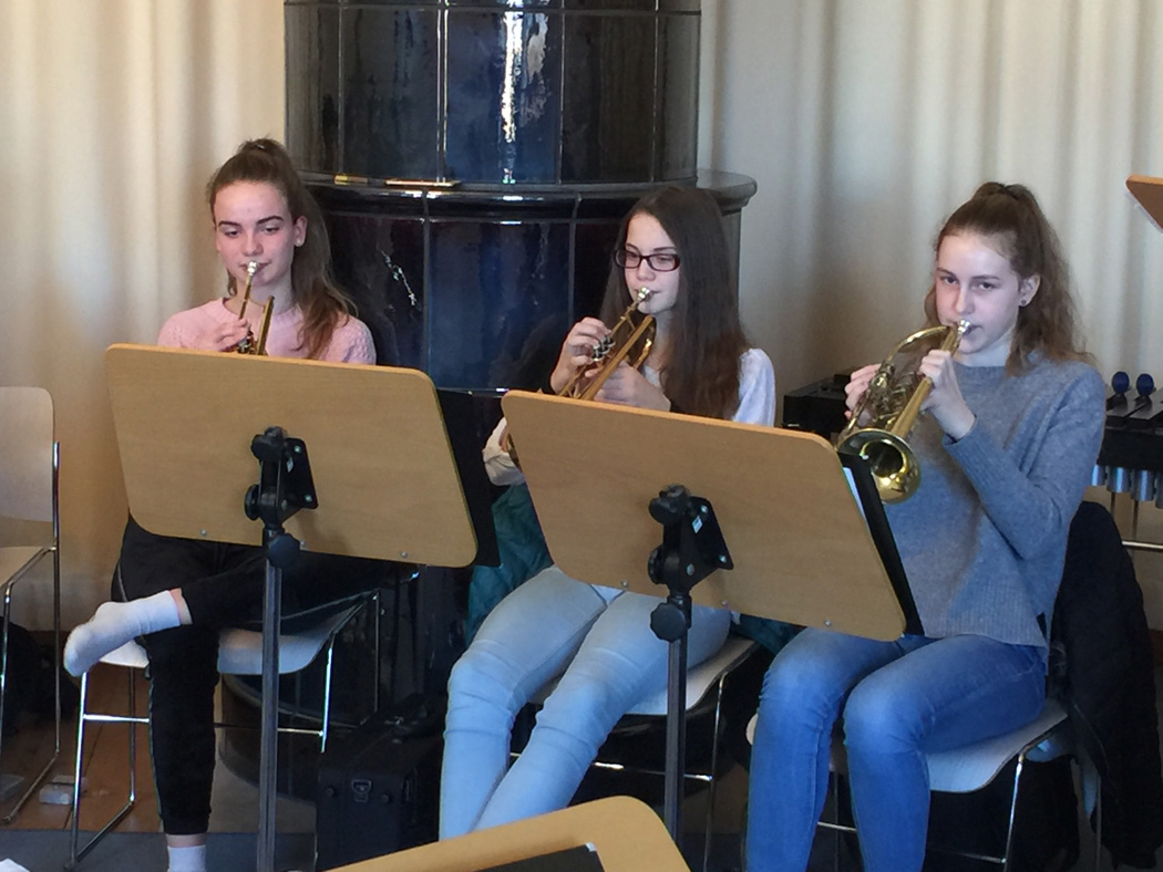 Das Orchester bereitete in großer Bläser- und Schalgwerkbesetzung Werke für das Faschingskonzert vor und erfüllte mit beschwingten Werken die Räume und beflügelte die Schüler. Die Bigband erweiterte ihr großes Repertoire mit Improvisationen . In der ersten Hälfte der Woche war neben der Probenarbeit für das Unter- und Mittelstufenorchester auch die Theatergruppe 6-10 unter Leitung von Ursula Kraft mit vollem Einsatz für ihre nächste Aufführung in Aktion. Trotz all der musischen Aktivitäten kam jedoch auch das Gesellige und die soziale Komponente nicht zu kurz!