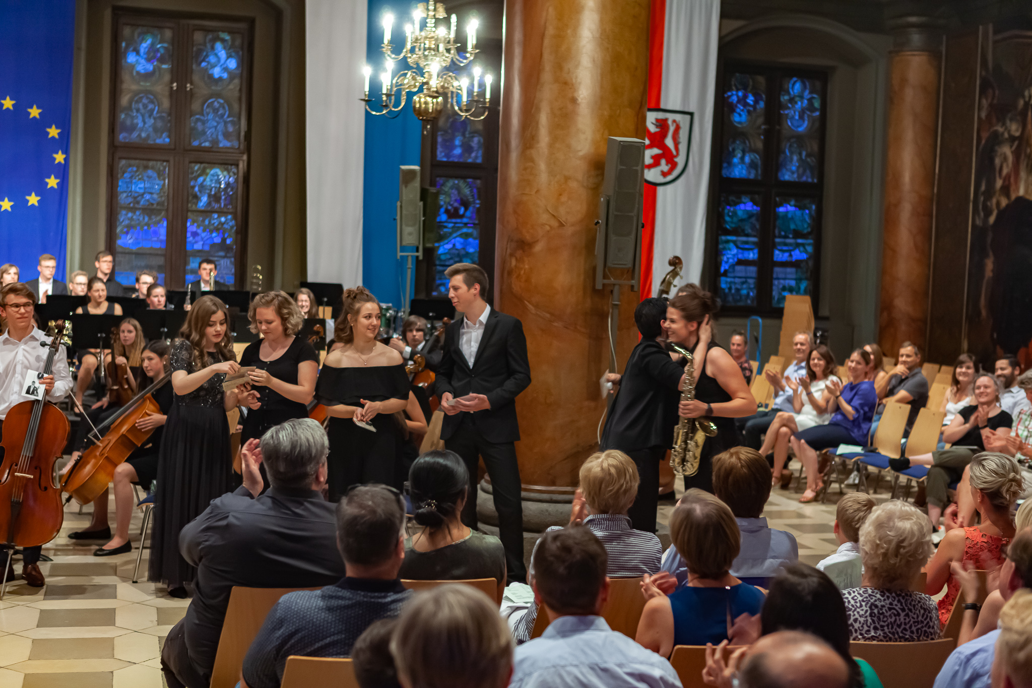 Klangvoll, virtuos, berührend, emotional und auf hohem Niveau – bei zwei tief beeindruckenden Konzertabenden im großen Rathaussaal haben die jungen Musik- und Gesangskünstler des Auersperg-Gymnasiums geglänzt. Die Schüler übertrafen sich mit ihren diesjährigen Jahreskonzerten ein weiteres Mal selbst. Die rund 500 Besucher goutierten es mit stehenden Ovationen.