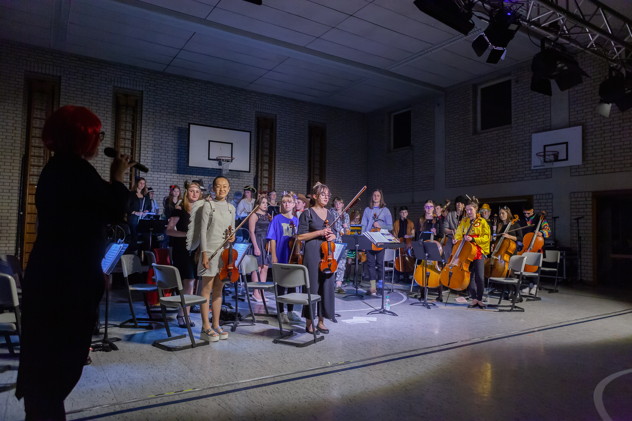 Zweieinhalb Stunden kurzweiliges Programm bot die zweite Auflage des Freudenhainer Faschingskonzerts der Oberstufe am Abend vor dem Unsinnigen Donnerstag. Margit Weinberger, Leiterin des Oberstufenorchesters und Initiatorin des Abends, hatte mit ihren Schülern trotz kurzer Probenzeit viele mitreißende Stücke einstudiert. Ihre äußerst disziplinierte Truppe glänzte mit reiner Orchestermusik, wie zum Beispiel dem Radetzkymarsch oder Stücken von Leroy Anderson. Vor allem aber begleitete sie mehrere Arien aus Operetten wie „Saison in Salzburg“, „Weißes Rössl“ oder „Herzogin von Chicago“, die das Publikum zum Schwelgen brachten.