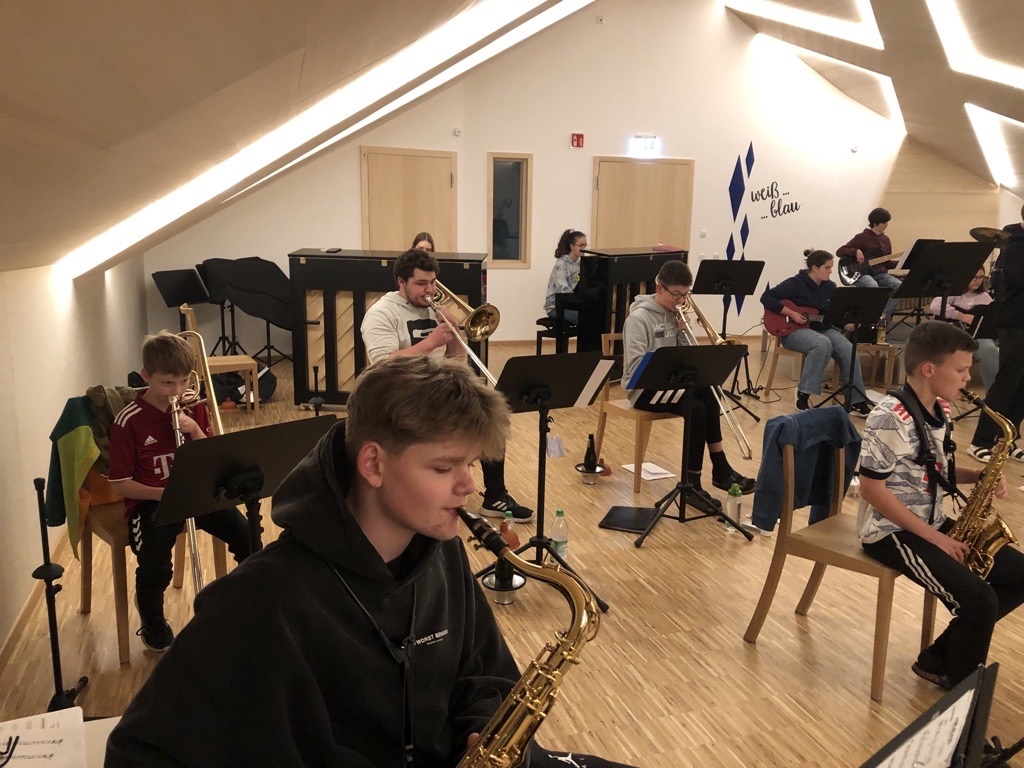 Nach zweimaligem coronabedingten Ausfall der sonst alljährlich stattfindenden Probentage war es endlich wieder soweit – in gestaffelten Gruppen fuhren 42 Schüler der Bigband und des Oberstufenorchesters sowie 25 Schüler des Oberstufenchores in die Volksmusikakademie Freyung, um dort jeweils zweieinhalb Tage lang zu proben.