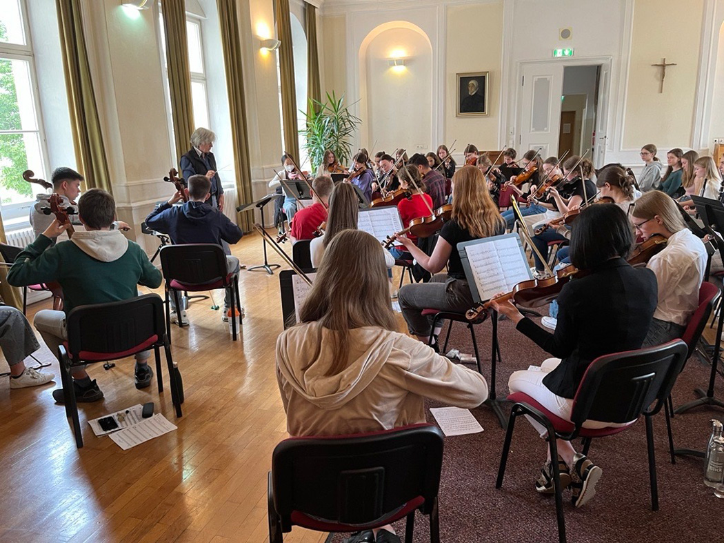 Nach über zweijähriger Konzert-Abstinenz bot sich für das Schulorchester ein Projekt ganz besonderer Güte! Der Intendant des Festivals der Europäischen Wochen Dr. Carsten Gerhard initiierte die Idee eines „EW-Jugendsinfonieorchesters“, welche Orchesterleiterin Margit Weinberger sofort aufgriff und weiterentwickelte. Ausgehend vom Schulorchester Freudenhain wurde das Ensemble erweitert durch Musikschüler des St. Gotthard Gymnasiums Niederaltaich, aus Stadt und Landkreis Passau, der Berufsfachschule Musik Plattling sowie den Musikschulen im benachbarten Oberösterreich. Am 13. Juli fand das Konzert in der Passauer Studienkirche St. Michael statt. Lesen Sie darüber in dem Bericht der PNP von Dr. Edith Rabenstein.