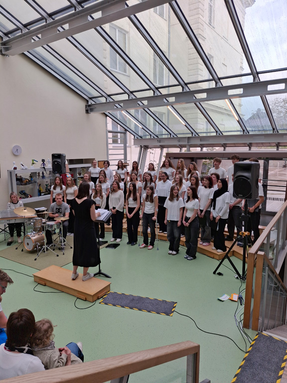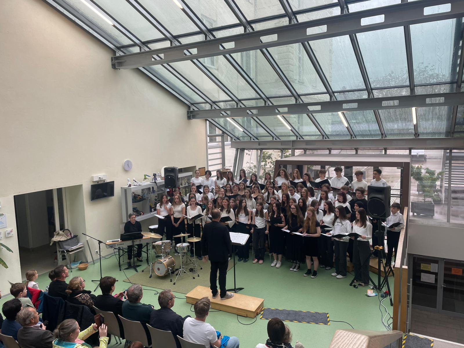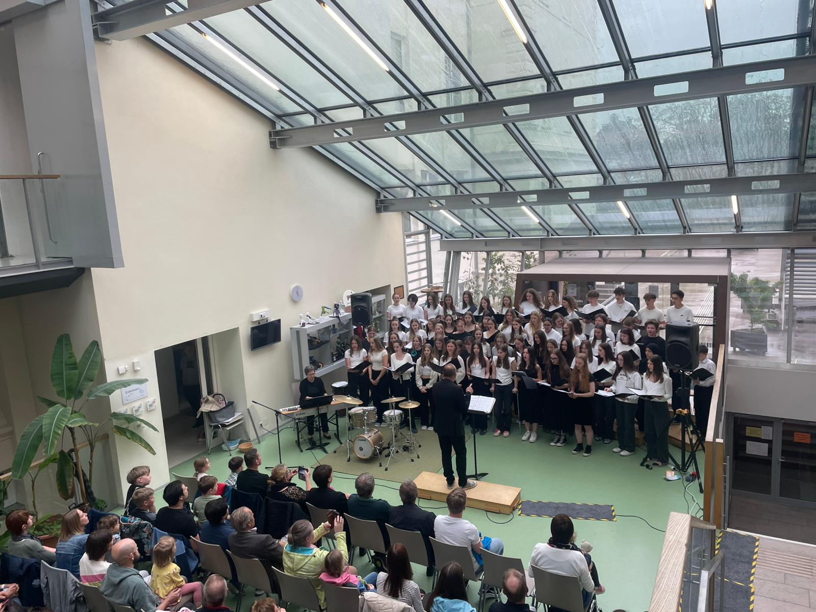Es gab gefühlvolle Balladen, Humorvolles aus den 30ern, Raumfüllendes aus Afrika, Die Chöre beider Gymnasien boten tolle Musik aus Ihren eigenen Repertoires und verbanden sich in einigen Stücken zum großen 2-Länder-Chor 2025.