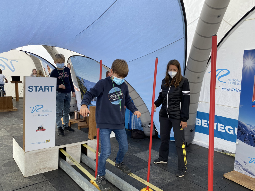 Dabei traten sie in einem Quiz gegeneinander an, während sie durch das Treten auf Fahrrädern die dafür notwendige Energie produzierten, schulten ihre Balance und Gleichgewichtsfähigkeit auf einer Slackline oder duellierten sich mit mentaler Stärke an einer speziellen Kugelbahn.