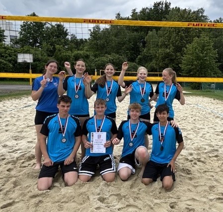 Am 26.5.2025 fand im Rahmen von Jugend trainiert für Olympia ein Beachvolleyballturnier des Arbeitskreises der Stadt und des Landkreises Passau statt. Die Spiele waren geprägt von spannenden Ballwechseln und beeindruckenden Spielzügen, was für eine tolle und mitreißende Atmosphäre sorgte. Unser Team erreichte dabei den dritten Platz, was eine beachtliche Leistung ist. Das Turnier bot den Schülerinnen und Schülern eine großartige Gelegenheit, ihre Fähigkeiten im Beachvolleyball zu präsentieren, Teamgeist zu zeigen und gemeinsam Spaß zu haben. Insgesamt war das Turnier ein voller Erfolg, der sowohl sportlich als auch gemeinschaftlich viel Freude bereitet hat. Wir freuen uns schon auf das nächste Turnier und auf weitere spannende Begegnungen!