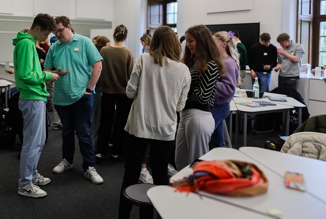 Bei der Auftaktveranstaltung am 24. April stellten die Schülerinnen und Schüler des Auersperg-Gymnasiums ihre Projekte den Studierenden vor. In einem offenen Austausch konnten die Studierenden, die diese Art des Lernens aus ihrer Schulzeit noch nicht kennen, Fragen zur Zielsetzung und zur konkreten Umsetzung stellen. Ihre Aufgabe wird es sein, die noch recht neue Lernform „FreiDay“ zu evaluieren und empirische Daten zu erheben, die es ermöglichen, den Lernerfolg sichtbar zu machen. Der Austausch war für beide Seiten sehr spannend und anregend, die Freudenhainer waren hinterher sichtbar stolz, ihre Vorträge in diesem Kreis gut gemeistert zu haben.