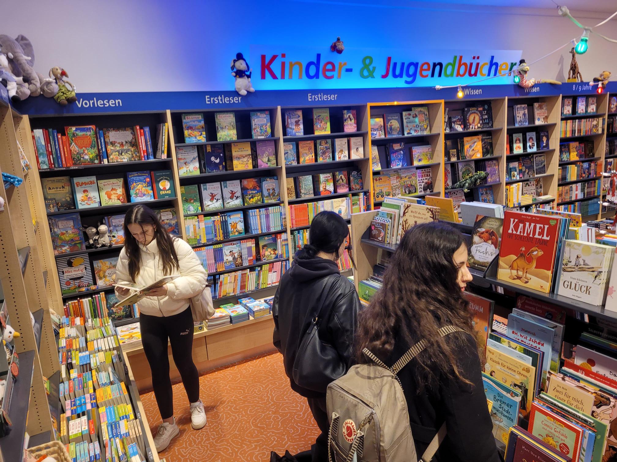 Ein Highlight unseres Besuchs war die Kinderbuchabteilung. Hier konnten wir Bücher entdecken, die uns an unsere eigene Kindheit erinnerten, was bei allen für Begeisterung sorgte. Die liebevoll gestaltete Abteilung und die große Auswahl an Büchern zeigten uns, wie wichtig und schön es ist, Kinder für das Lesen zu begeistern.