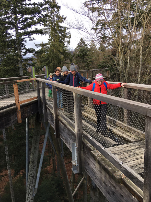 In zwei Gruppen fuhren die Schülerinnen der 6. Jahrgangsstufe im Februar in das Jugendwaldheim des Nationalparks Bayerischer Wald. In beiden Wochen konnte man frühlingshafte Wärme an einem Tag und Schneegestöber am nächsten Tag erleben. Leider verkürzte sich der Ausflug für die SchülerInnen der Klassen 6b und 6c aufgrund des Sturmtiefs Sabine um zwei Tage. Betreut von erfahrenen Waldführern, wurden bei Wanderungen und Spielen die besonderen Bedingungen in einem Nationalpark thematisiert. Ein alljährliches Highlight ist der Besuch des Tierfreigeländes mit interessanten Informationen zu den einzelnen Tierarten. Mit etwas Glück konnten dabei fast alle Tiere tatsächlich beobachtet werden, nur die Elche wollten sich nicht zeigen. Abgerundet wurde die Fahrt durch einen Besuch in einer Glasbläserei und dem Waldgeschichtlichen Museum in Sankt Oswald, sodass die Woche wie im Fluge verging. Markus Hofbrückl