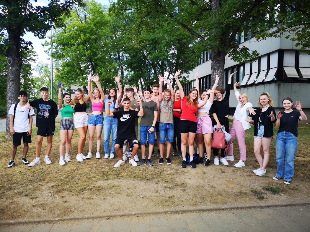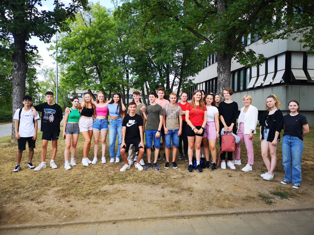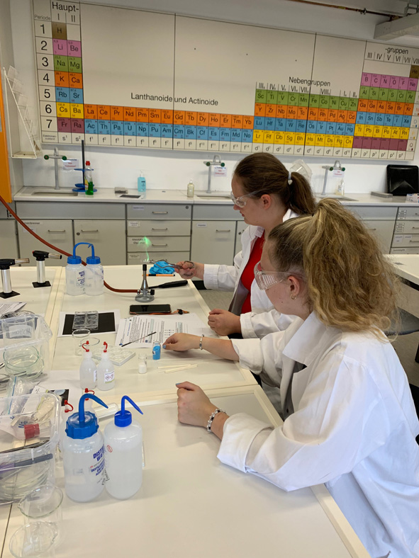 Die Klasse 9a des Auersperg-Gymnasium Passau hatte am Schülerexperimentiertag der Universität Regensburg, dem 26. Juli 2022, die Möglichkeit, eigenständig in Gruppen Experimente zum Thema „Chemische Reaktionen und Energetik“ durchzuführen. Dadurch wurde ihr Wissen zur Thematik aufgefrischt und verankert. Die Schülerinnen und Schüler erhielten die Möglichkeit, selbst zu experimentieren und somit ihr Interesse an den jeweiligen Inhalten zu steigern und ihre experimentellen Kompetenzen zu verbessern. In vier Stationen konnten die Schüler einen Feuerlöscher bauen, durch Flammenfärbung Ionen nachweisen, ihren Fingerabdruck kenntlich machen und einen Lumineszenzversuch durchführen.