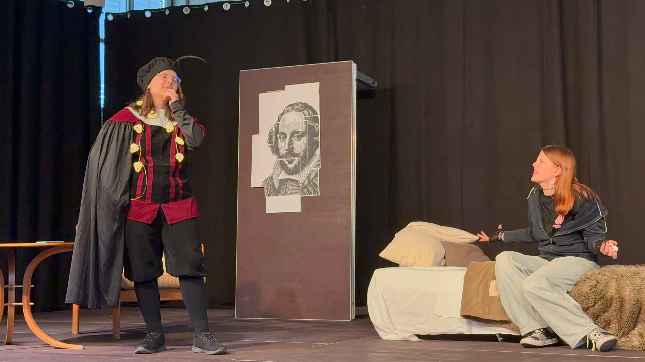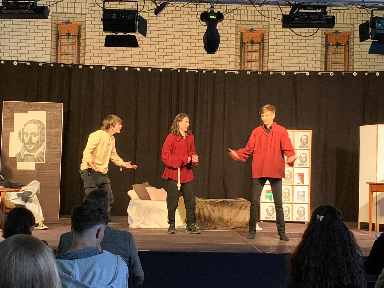 Mit einem tiefen Seufzer beginnt die Geschichte: „Shakespeare - Gerührt und nicht geschüttelt! “. Julia, verkörpert von Franziska Schubert, lässt sich erschöpft auf ihr Bett fallen. Umgeben von einem Schreibtisch, einem Bücherregal, das mit Shakespeare-Ausgaben gefüllt ist, und ihrem treuen Plüschtier, ist sie sichtlich genervt. Sie hat Sport geschwänzt, daraufhin eine Strafarbeit aufgebrummt bekommen und soll nun ausgerechnet über Shakespeare ein Referat halten. „Als ob das heute noch jemanden interessiert“, murmelt sie und wirft das Buch weit weg von sich. Das Publikum lacht, denn Franziskas Darstellung ist nicht nur überzeugend, sondern auch unglaublich gegenwärtig und spricht viele Jugendliche direkt an. Doch dann geschieht das Unfassbare als der Meister selbst erscheint. William Shakespeare, gespielt von Luisa Winter, betritt die Bühne in einem langen Mantel und einer Totenkopfkette, die zu leuchten beginnt, wenn er seine eigenen Werke zitiert. „Wenn die Seele bereit ist, sind es die Dinge auch“, sagt er, und mit diesen Worten beginnt eine fesselnde Reise durch Sprache, Drama, Liebe, Intrige und Komik. Franziska Schubert verkörperte die Hauptrolle der Julia mit einer Intensität, die das Publikum förmlich in ihren Bann zog. Sie bewegte sich mühelos zwischen Sarkasmus, Wut, jugendlicher Überheblichkeit und echter Verzweiflung und vermittelte jede Emotion mit glaubwürdiger Authentizität. Das Publikum lachte mit ihr, litt mit ihr und glaubte ihr jede einzelne Sekunde. Ihr Dialog mit „Shakespeare“ war immer schnell, pointiert und tiefgründig. Als Julia sich über Machtgier und Intrigen in seinen Stücken beschwerte, entgegnete der Dramatiker: „An sich ist nichts weder gut noch böse, das Denken macht es erst dazu“. Das Besondere an dieser Inszenierung war, dass Julia nicht nur in Gedanken zwischen den Szenen springt, sondern tatsächlich mitten hinein. Mal beobachtet sie „Romeo und Julia“, mal steht sie zwischen Hexen aus Macbeth oder mitten in einem Wortgefecht aus „Der Widerspenstigen Zähmung“. Die Übergänge waren fließend, das Spieltempo rasant und der Humor Gold wert. Alessio, Julias Freund, gespielt von Adrian Heinrich, trug mit seiner Hipsterkleidung, seinem Selfiestick und seinen großen Sprüchen zur Unterhaltung bei. Das Publikum reagierte begeistert, als es schließlich zu einem wortwörtlichen Fechtduell zwischen ihm und Shakespeare kam. Was es aber wirklich außergewöhnlich machte, war die bemerkenswerte Fähigkeit des Ensembles, eine breite Palette von Charakteren zu verkörpern. Im Laufe des Abends schlüpften viele der Darstellerinnen und Darsteller mühelos in verschiedene Rollen, jede mit ihrer eigenen einzigartigen Tonlage und Persönlichkeit. Von düsteren Hexen und schwärmenden Elfen bis hin zu verzweifelten Liebenden und machtbesessenen Intriganten verliehen die Darsteller jeder Figur eine lebendige und unverwechselbare Farbe. Einer der kraftvollsten Momente der Aufführung war zweifellos die Auseinandersetzung mit den Themen Wahrheit und Liebe. Shakespeare selbst verkörperte diese Emotionen, als er die berühmten Worte sprach: „Lieb’ ist ein Rauch, den Seufzerdämpf’ erzeugt… Was ist sie sonst? Verständ’ge Raserei.“ Julia, mit Tränen in den Augen, erzählte von ihrer zerbrochenen Beziehung und vermittelte dem Publikum die Tiefe ihrer Emotionen. Am Ende des Stücks hatte Julia nicht nur ihre Präsentation abgeschlossen, sondern auch eine tiefere Wertschätzung für die Weisheit und die zeitlosen Themen, die in klassischen Geschichten verborgen sind, entwickelt. Doch kaum hatte sie eine Herausforderung gemeistert, stand schon die nächste vor der Tür: die bevorstehende Physikprüfung und die Komplexität von Einsteins Theorien. Der letzte Lacher gehörte dem Genie selbst, der von Michael Augustin als krönender Abschluss geseilt wurde. Nun blieb also offen, wie es mit Julia und ihrer nächsten Prüfung weiterging. Nach der Aufführung wandten sich die Darstellerinnen und Darsteller nochmal direkt an das Publikum und insbesondere an ihre Regisseurin. Unter Applaus drückten sie ihre Dankbarkeit aus und bezeichneten die Erfahrung als das Highlight ihrer Schulkarriere. Es war offensichtlich, dass Theater für diese jungen Menschen mehr ist als nur eine Pflichtveranstaltung im Schulkalender. Es bietet nämlich eine Plattform, auf der sie sich kreativ ausdrücken, über sich hinauswachsen und ihre Talente einem breiteren Publikum präsentieren können.