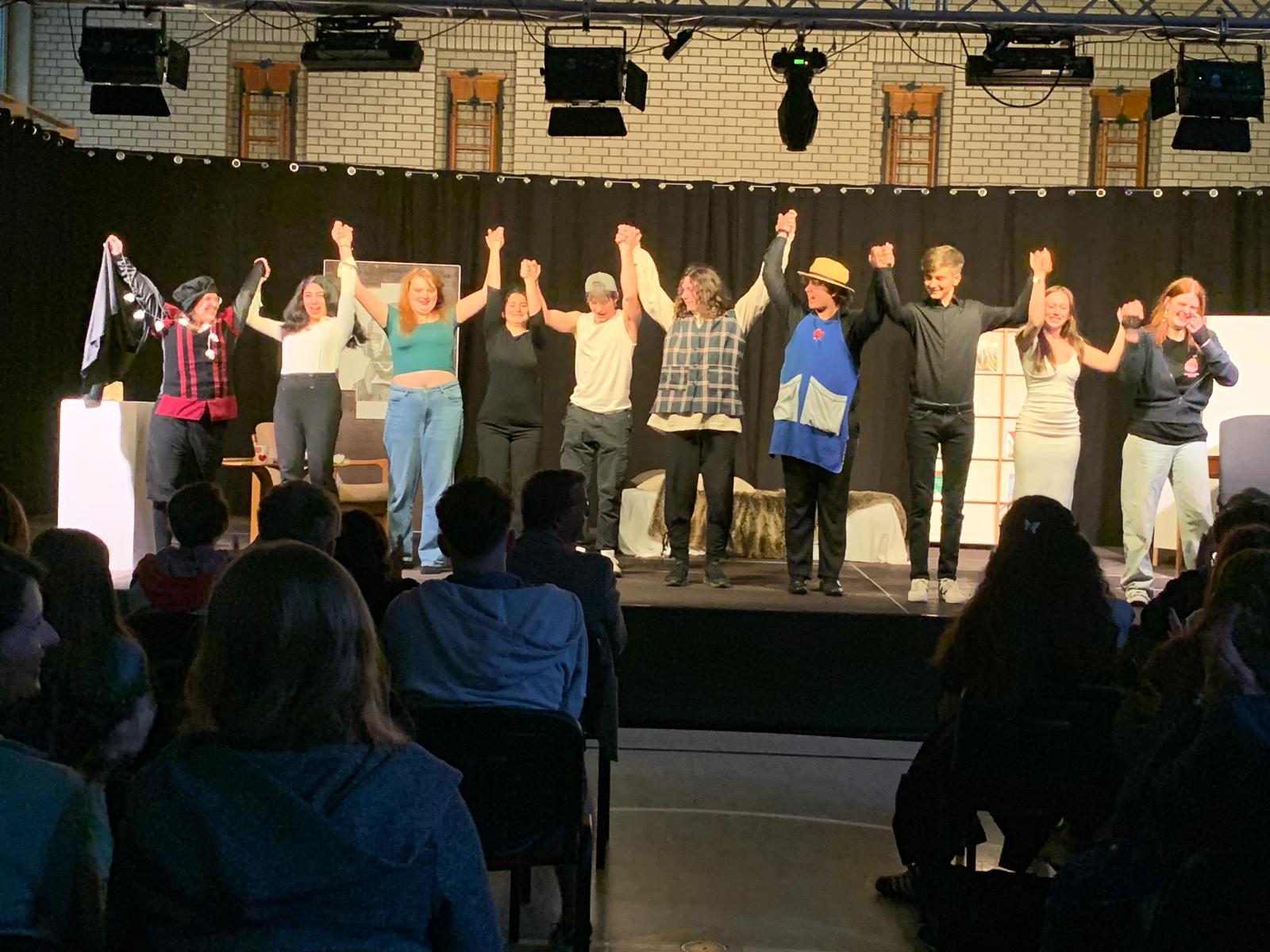 Shakespeare 2025 8Die Scheinwerfer wurden justiert, ein letzter Textdurchlauf stand an und Nervosität lag in der Luft. Rollen mussten getauscht werden, weil jemand krank wurde, und Dialoge wurden überarbeitet, weil Szenen nicht perfekt funktionierten. Neue Ideen kamen und gingen, doch bei all dem hatte eine stets den Überblick: Stephanie Holly, die Leiterin des Oberstufentheaters. Sie war nicht nur Regisseurin, sondern auch Ruhepol, Motivatorin und kreative Kraft hinter einem Stück, das mehr war als eine Schulaufführung. Den Abend eröffnete Marie-Luise Täuber, stellvertretende Schulleitung des Auersperg-Gymnasiums. In ihrer Begrüßung betonte sie, wie sehr kreative Projekte wie dieses das Schulleben prägen und was es bedeutet, gemeinsam etwas auf die Beine zu stellen. Dann wurde es dunkel im Saal und es hieß: Bühne frei für das Oberstufentheater.