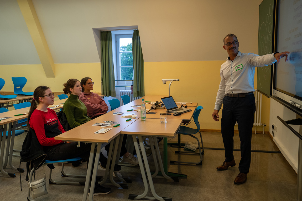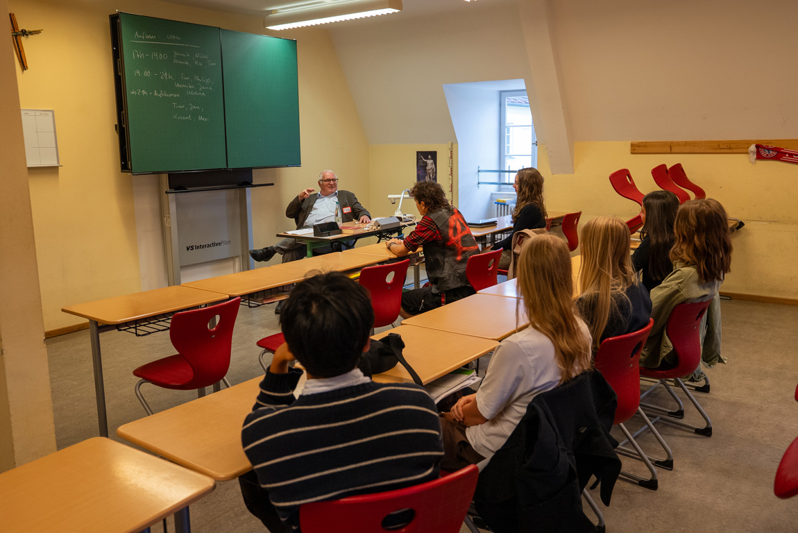 „Ein Abend ohne Noten, aber voller Input“, so eröffnete Schulleiter Johannes Fuchs den Berufsinformationsabend am Auersperg-Gymnasium. Mit einem Lächeln begrüßte er die Schülerinnen und Schüler der elften und zwölften Jahrgangsstufe sowie einige Eltern: „Heute dürft ihr einmal selbst die Fragen stellen, an Menschen, die aus der Praxis kommen, aus dem echten Berufsleben.“ So wurden also die Klassenzimmer zu Diskussionsräumen, in denen Erfahrungen aus erster Hand geteilt wurden. Die Idee war, dass ehemalige Freudenhainerinnen und Freudenhainer sowie weitere engagierte Fachkräfte aus verschiedensten Bereichen die Möglichkeit bekommen, ihre Berufsfelder vorzustellen, und das vom Grundschulwesen über Polizei bis hin zu Architektur und Psychologie. In drei aufeinanderfolgenden Durchgängen konnten sich die Jugendlichen ihre Wunschvorträge frei wählen. Die Koordinatoren für berufliche Orientierung des Gymnasiums Gerald Dobretsberger und Quirin Würfl machten den reibungslosen Ablauf erst möglich, da sie schon seit Wochen mit der Planung beschäftigt waren und vor allem versuchten, dass für jeden etwas dabei ist. Dadurch kam ein sehr persönlicher Austausch zustande, der über klassische Berufsorientierung weit hinausging.