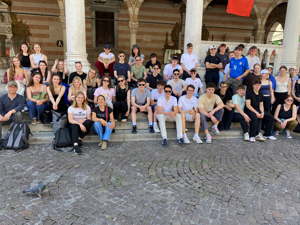 Am Donnerstag um circa 4 Uhr hieß es: Abfahrt. Noch verschlafen stiegen wir an der Fritz-Schäffer-Promenade in den Bus ein. Gegen Mittag erreichten wir Udine, wo uns ein kleiner Spaziergang durch die Stadt erwartete. Die ersten Sonnenstrahlen auf der Haut, ein bisschen Espresso, ein bisschen Eis und vor allem aber ein aufmerksamer Blick nach oben.