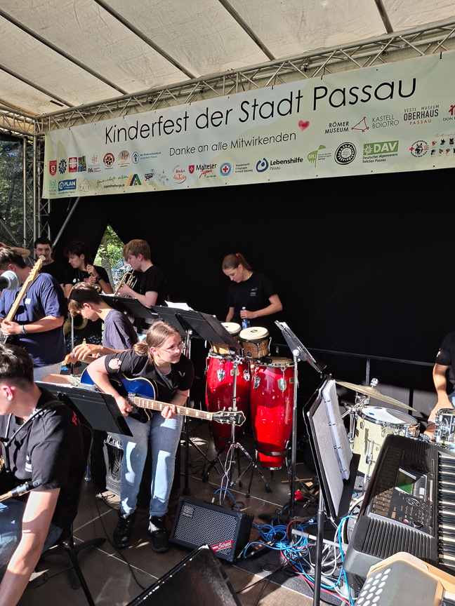 Das Kinderfest der Stadt Passau am 21.09.2025 war für alle ein Fest. Viele junge und „alte“ Gäste kamen und genossen das vielfältige Programm im wunderschönen Ambiente des Bschüttparks. Die Sonne schien den ganzen Tag auf die fröhliche Festwiese. Wem das noch nicht genug war, der ließ sich zum Ende des Programms von der „FreudenhainBigBand“ ordentlich einheizen. Die jungen Musiker vom Freudenhain, die auf der sonnenbeschienenen Bühne selbst ordentlich schwitzten, zeigten sich zu Beginn der Saison in bemerkenswerter Form.
