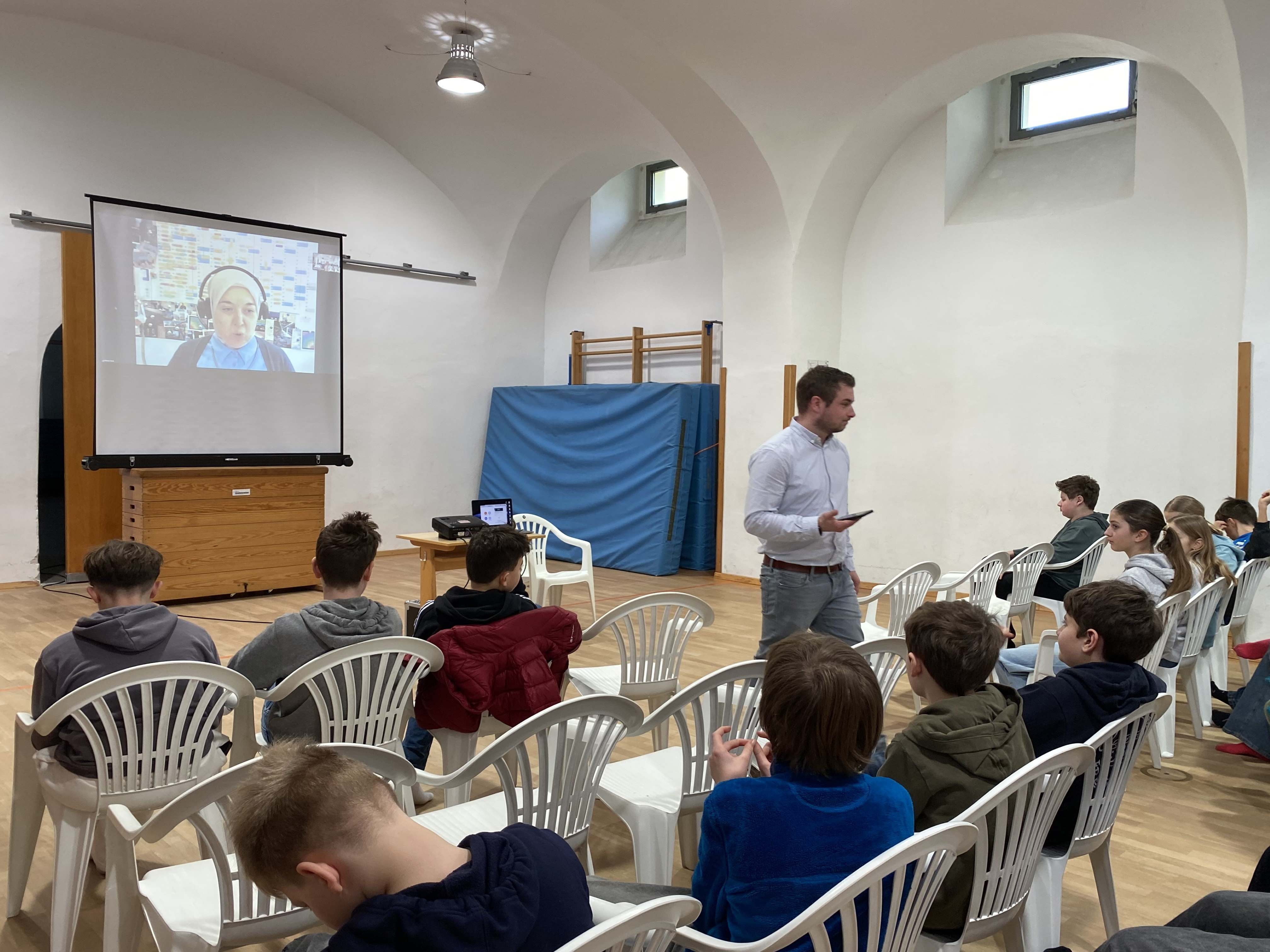 Die 7. Klassen waren von Florian Sedlmeier mit Material für die interreligiöse Begegnung zwischen Christen und Muslimen ausgestattet worden, bevor sie im Austausch mit der Religionspädagogin Gönül Yerli, der Vorsitzenden des Münchner Forums für Islam in einer kurzweiligen Videokonferenz in die Geheimnisse von Kaaba und Moschee eingeführt wurden und gleichzeitig auch die aktuelle Bedrohungslage engagierter Muslime in Deutschland vor Augen geführt bekamen.