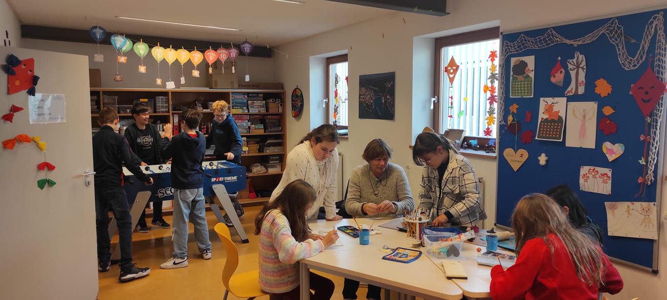 Die Offene Ganztagsbetreuung bietet eine gute Möglichkeit, Hausaufgaben mit fachkundiger Unterstützung bereits in der Schule anzufertigen und gleichzeitig das Bedürfnis der Kinder nach gemeinsamem Spielen und Entspannen mit Gleichaltrigen auszuleben.