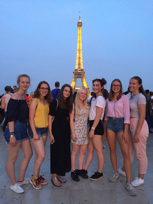 Am 19. Juli machten sich 54 Schülerinnen und Schüler des kommenden Abiturjahrganges in zwei ungleichen Gruppen auf große Fahrt: 47 von ihnen wählten Barcelona als Ziel, nur 7 Paris. Viele der Mitfahrenden nutzten gleich die Gelegenheit, sich mit den neuen Abishirts mit dem Motto "Abi leave I can fly" an ihrem Traumziel, dem Strand von Barcelona und dem Pariser Eiffelturm, ablichten zu lassen. Weitere Fotos und Berichte zu den Fahrten gibt es hier im Anschluss.