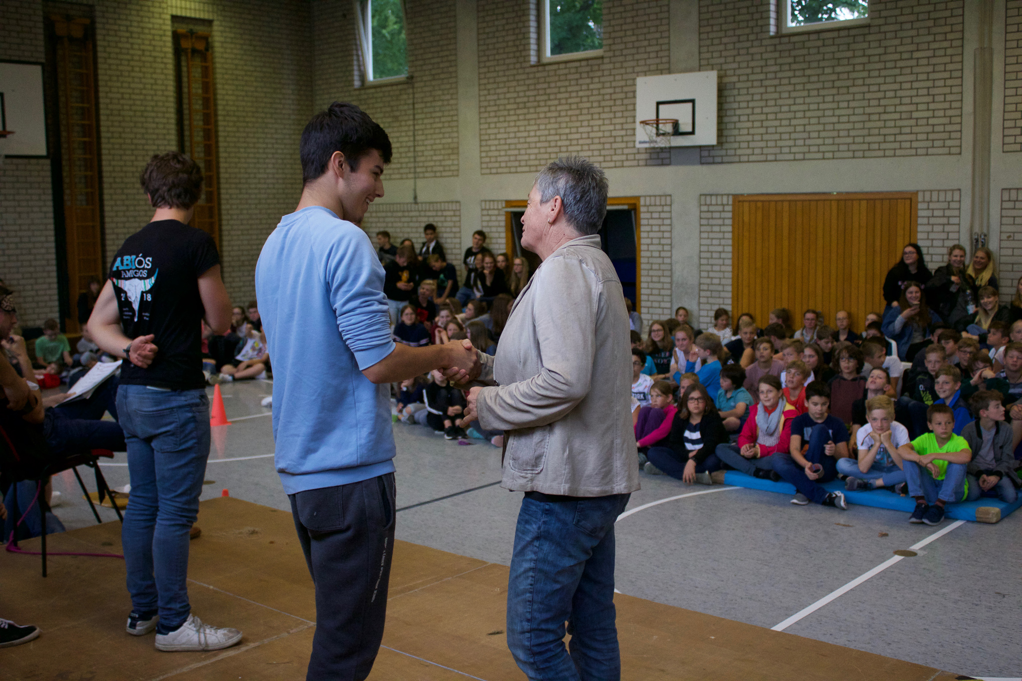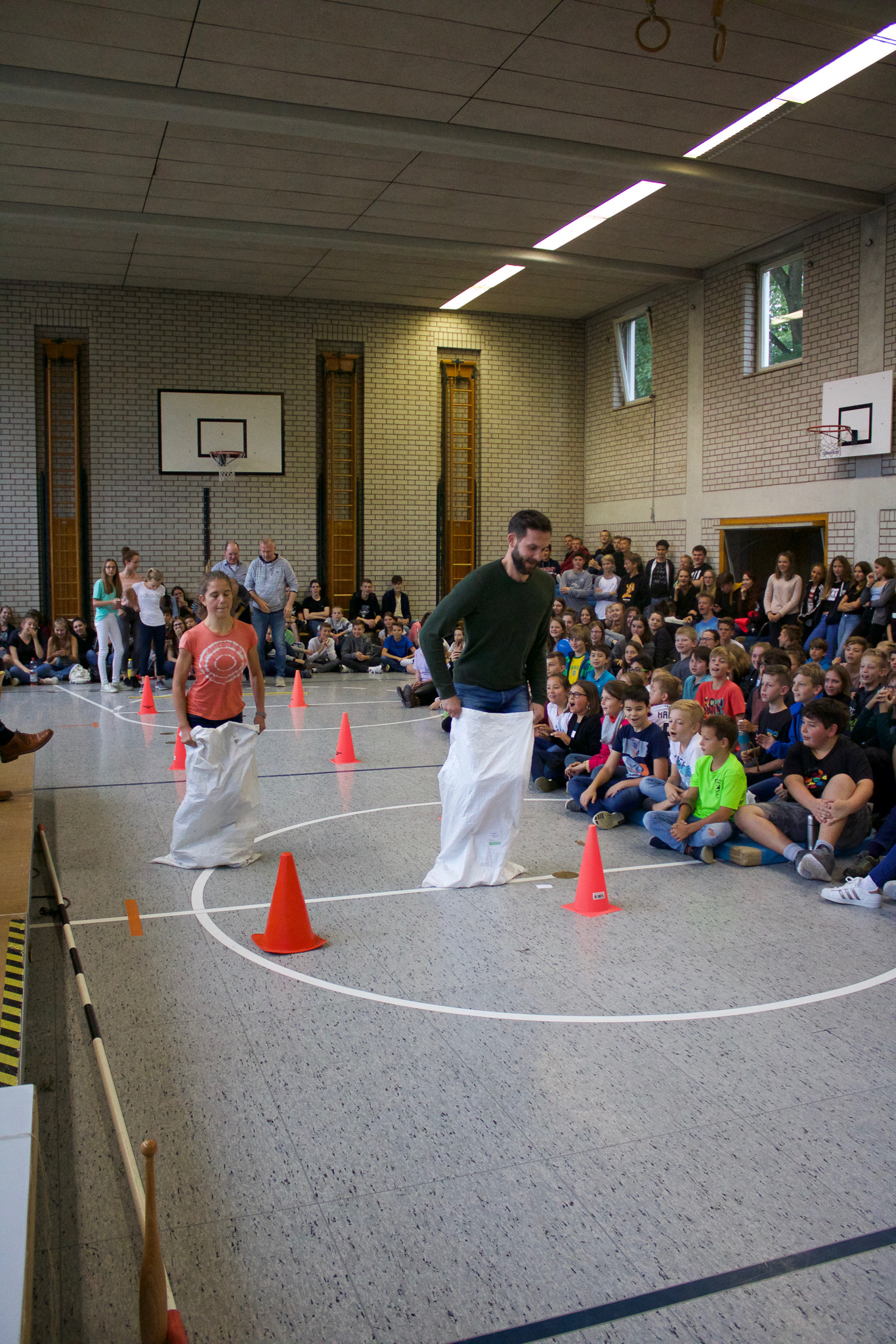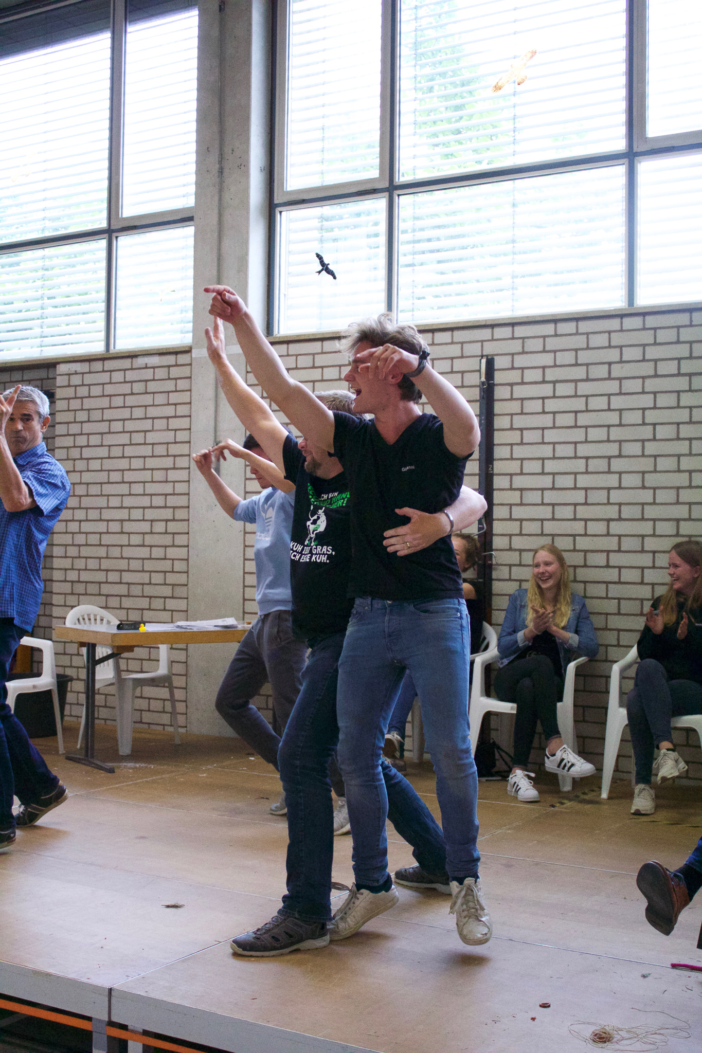 Einen besonderen Grund zu feiern hatten die Abiturienten, da es in diesem Jahr wieder einmal alle geschafft haben, sodass die Fahne herausgehängt werden konnte. Mit einem gelungenen Abistreich verabschiedete sich der Jahrgang am 28. Juni von den Mitschülern und vom Lehrerkollegium. Die Nacht vorher hatten sie schon genutzt, um den Neubau mit den Kopien zu verhüllen, die sie in der Oberstufe ausgeteilt bekommen haben. Angeblich reichten dazu die Kopien von zwei Abiturientinnen.