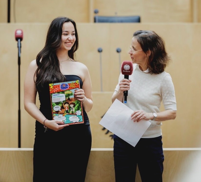 Larissa Ivanko: Ich war sowohl Teil des Referenten- als auch des Betreuungsteams. Ich habe Interviews geführt, Kinder begleitet, moderiert, und mich mit anderen ausgetauscht. Einige kannte ich noch aus dem Vorjahr, denn ich war auch 2024 schon in der Jury dabei. Dieses Jahr durfte ich erneut in der Jury der Werner-Bonhoff-Stiftung mitwirken und sogar den Sonderpreis im Bundesrat überreichen.
