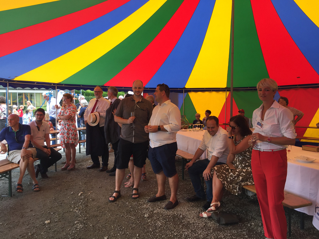 Wer glaubt, dass unsere Schule in den großen Ferien in einen Dornröschenschlaf versinkt, der irrt sich gewaltig. Wie jedes Jahr findet die Ferienfreizeit des Kinderschutzbundes in den ersten drei Augustwochen auf Schloss Freudenhain statt, an der 160 Kinder im Alter von drei bis zwölf Jahren täglich teilnehmen. Das vielfältige Programm beginnt um 7:30 Uhr und wird von vielen Ehrenamtlichen gestaltet, die sch zum Teil schon jahrelang freiwillig zur Verfügung stellen und dafür ihre Ferien bzw. ihren Uralub opfern. Ihnen und den vielen Sponsoren dankte Julia Stern, Vorsitzende des Kinderschutzbundes, beim "Fest der Freunde" am 7. August besonders.