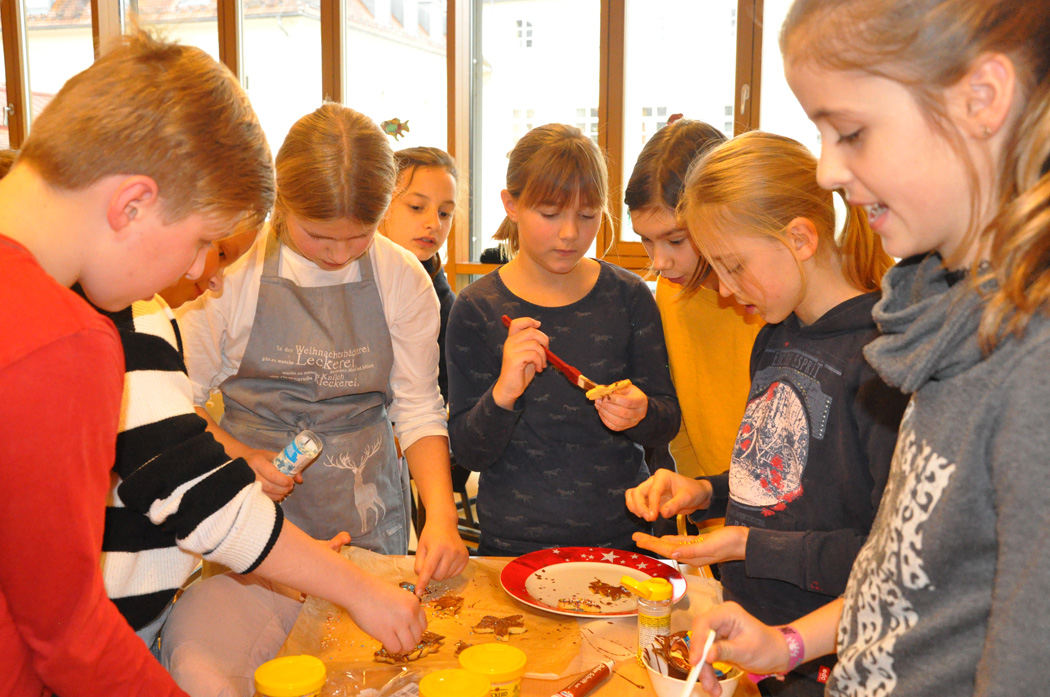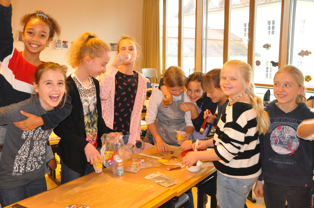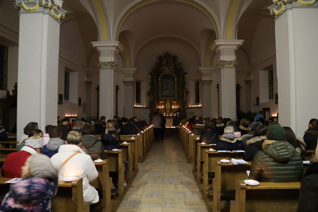 Das Projekt „Freudenhain leuchtet“ führte am Mittwochabend die gesamte Schulfamilie des Auersperg-Gymnasiums zu einer Weihnachtsfeier für alle Sinne zusammen. Nach Einbruch der Dunkelheit strömten die Schüler mit ihren Familien, aber auch Ehemalige und Freunde aufs Schulgelände. Die 5. und 6. Klassen boten bei einem bunten Basar im Festsaal Selbstgebackenes und Selbstgebasteltes an. Alle 7. bis 10. Klassen hatten in ihren Klassenzimmern Krippen aufgebaut, die zu einem Spaziergang durch das weihnachtlich geschmückte Schulgebäude animierten. Stärken konnte man sich im Schlosshof mit großzügig von der Metzgerei Brodinger gestifteten Bratwürsten, Gemüsesuppe und Punsch. Der Erlös aller Verkäufe wird zusammen mit den beim Weihnachtskonzert gegebenen Spenden der Passauer Tafel zugutekommen.