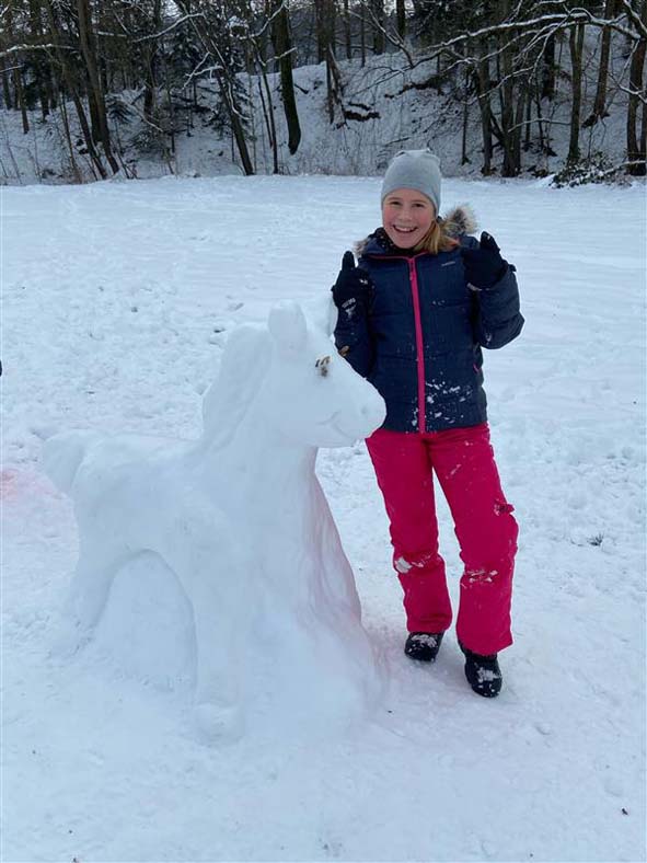 „Die Not macht erfinderisch“ – auch im Sportunterricht. Daher rief die Fachschaft Sport in diesem Jahr zu einem sportlichen Wettbewerb der besonderen Art auf: die Schneemann-Challenge. Ziel des Wettbewerbs war es, sich beim Schneemannbauen körperlich und kreativ zu verausgaben, um sich trotz der Einschränkungen während der Corona-Pandemie mit Spaß und Freude an der frischen Luft zu verausgaben. Nachdem uns so viele tolle Bilder aus allen Jahrgangsstufen erreicht haben, war es nicht leicht, daraus die besten Schneefiguren auszuwählen. Unter die Top 3 schafften es schließlich Julian Pretzel und Fabian Wolf (beide Q11) sowie Jasmin Szabó(6b) auf Platz 3, Isalie Matheis(8b) auf Platz 2 (Foto li.) und Jonas Espenberger (8b) auf Platz 1 Herzlichen Glückwunsch!
