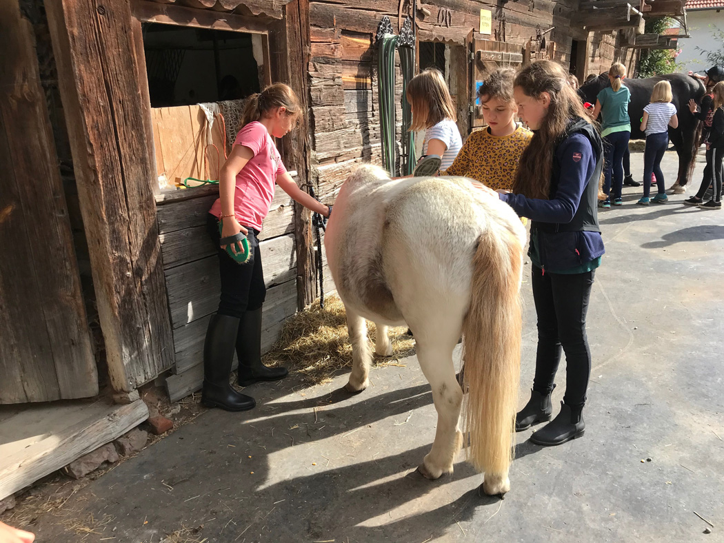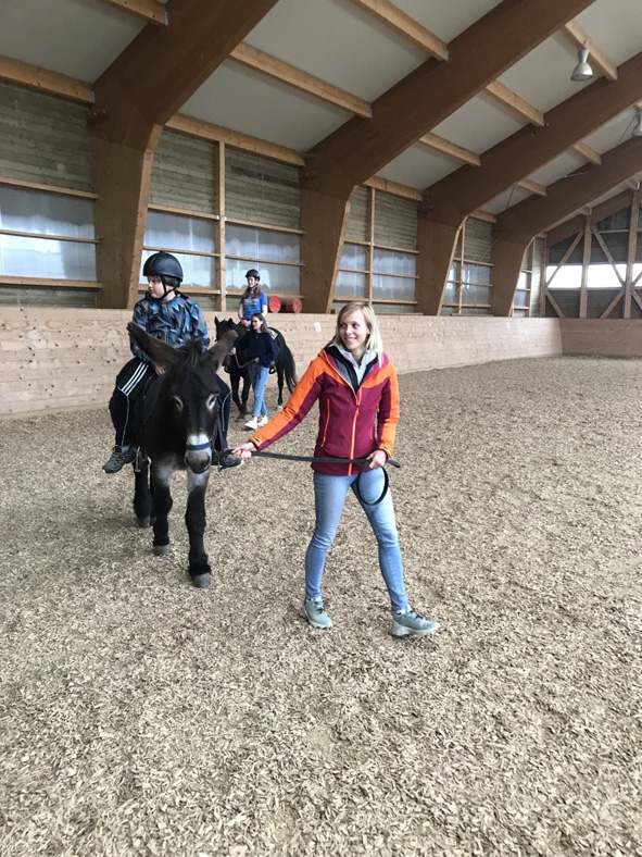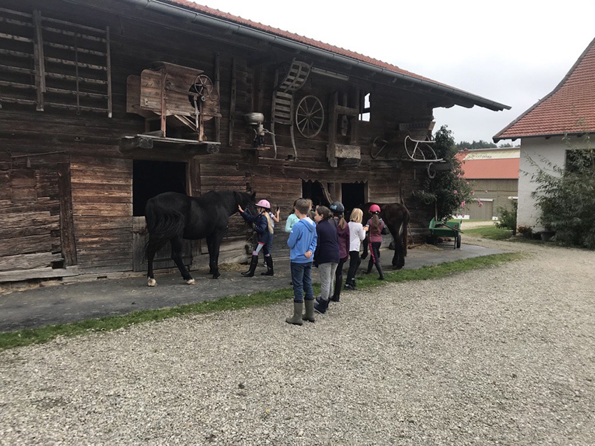 Nachdem alle ihren Cov-19 Antigen Schnelltest gemacht hatten, warteten sie gemeinsam mit ihren Eltern vor der Schule auf den Bus. Für einige war es die erste Reise ohne Eltern und Geschwister. Alle waren aufgeregt, vereinzelt flossen schon jetzt Tränen. Nachdem das Gepäck im Bus verstaut war und sich alle von Ihren Eltern verabschiedet hatten, konnte es losgehen. Nach einer fast zweistündigen Fahrt war das Ziel erreicht. Dort angekommen wartete Familie Mödder bereits auf ihre Gäste. Nach einer kurzen Einweisung in die Hausregeln und einer Führung über den Bauernhof wurden die Zimmer verteilt und konnten bezogen werden. Hier hatten die meisten 5b-ler zum ersten Mal ein Bett zu beziehen. Überwiegend gelang es auf Anhieb. Im Anschluss gab es die erste leckere Mahlzeit: Suppe, Salat und Nudeln mit Gulasch schmeckten in ländlicher Umgebung besonders gut. Nach dem Essen warteten viele Aktivitäten auf die Schüler und Schülerinnen. Hallenfußball, Tischtennis, Fangen, Brettspiele, Gemeinschaftsaktivitäten mit den Tutoren, Reiten und vieles mehr standen auf dem Programm. Die Abende klangen entweder aus mit Gruselgeschichten am Dachboden, die Herr Haberl um Besten gab, oder enemLagerfeuer. Frau Kramer las uns aus dem Buch „Die zauberhafte Miss Braitwhistle“ vor. Einen mysteriösen Vorfall gab es auch. Am zweiten Tag des Aufenthaltes fanden einige Mädchen ihre Zimmer durchwühlt vor und es fehlten einige Gegenstände. Bis auf eine Tüte Schokokugeln tauchte allerdings alles wieder auf. Trotz der Tatsache, dass man sich wegen des Vorfalls in den Zimmern nicht mehr besuchen durfte, konnte das Ziel des Ausfluges erreicht werden. Alle in der Klasse hatten Gelegenheit, sich besser kennenzulernen, und es bildete sich ein Gemeinschaftsgefühl aus. Besonderer Dank gilt Frau Kramer, Herrn Haberl, den Tutoren und Familie Mödder, die den tollen Ausflug möglich gemacht haben. Es ist zu wünschen, dass alle folgenden Klassenfahrten so schön werden wie diese.