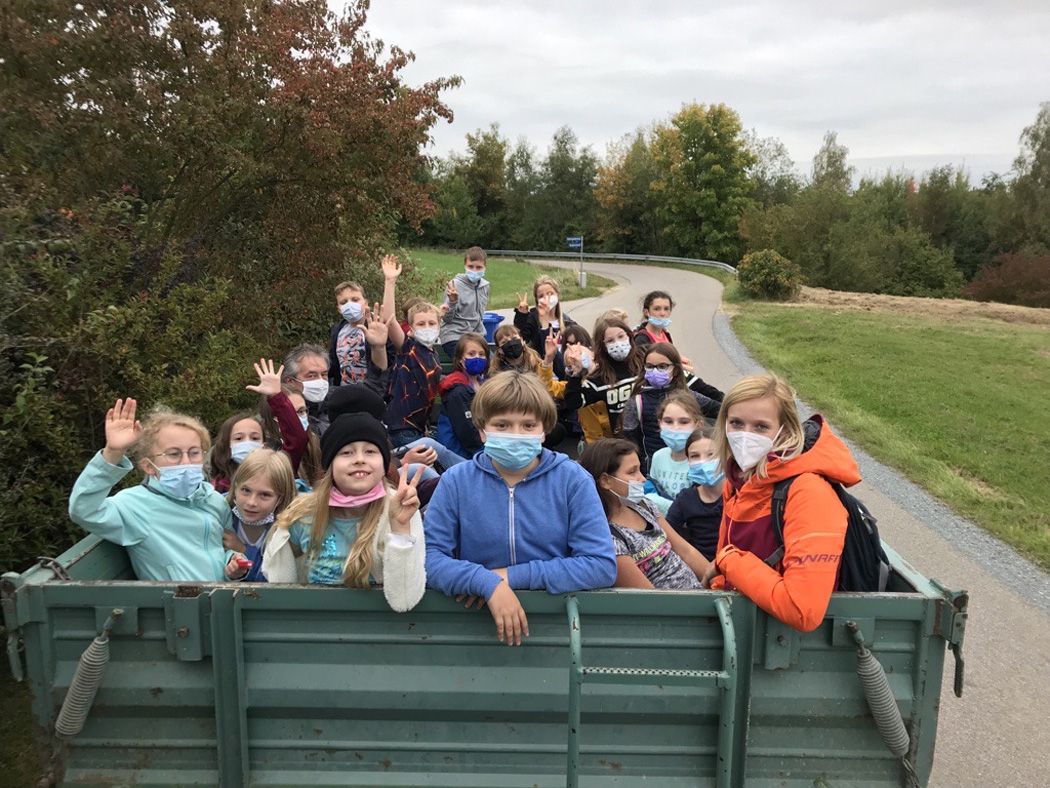 Auch dieses Jahr unternahmen die 5.Klassen, wie es in Freudenhain Tradition ist, einen Ausflug auf den Bauernhof von Familie Mödder in Gangkofen. Ziel war es, sich näher kennen zu lernen und die Klassengemeinschaft zu stärken. Leider war coronabedingt nicht viel Zeit dafür. Was unter normalen Umständen eine Woche dauern darf, musste pandemiebedingt auf drei Tage verkürzt stattfinden. Frau Kramer und Herr Haberl sowie die Tutoren Alene und Benedikt machten am 29.09.21 mit der 5b den Anfang.
