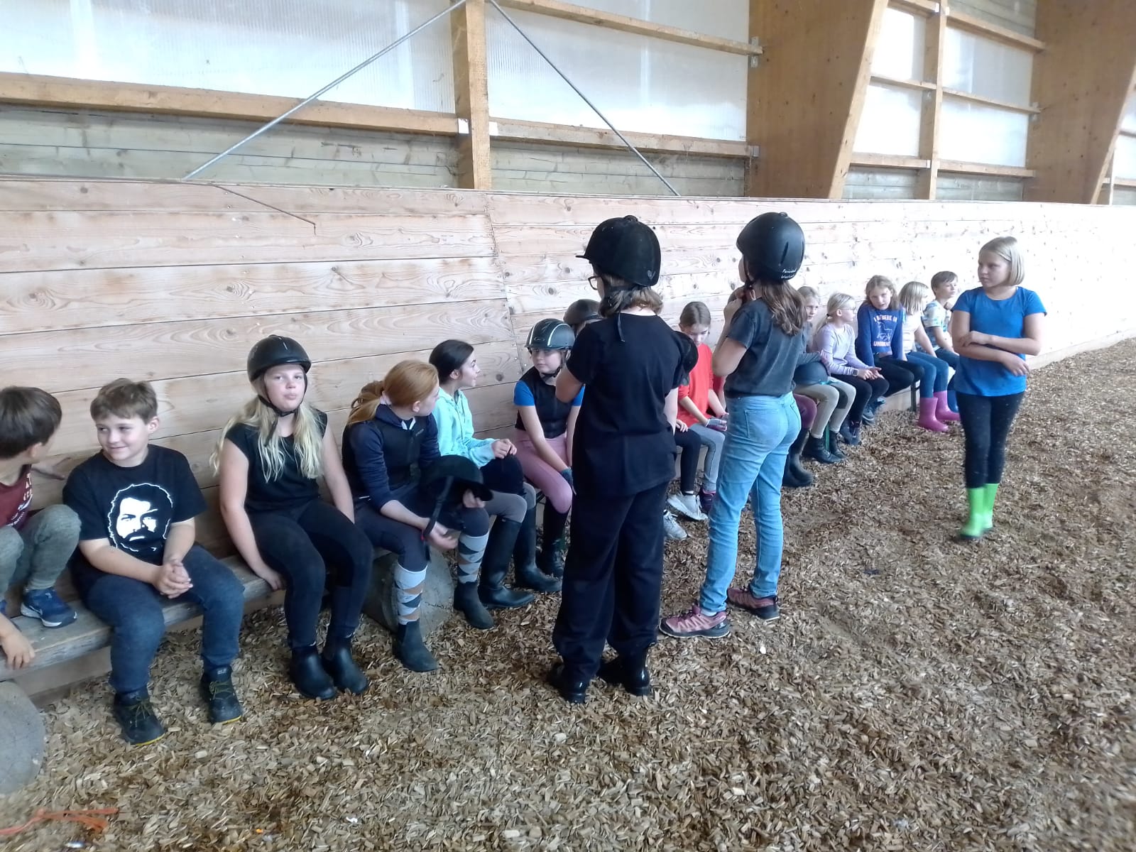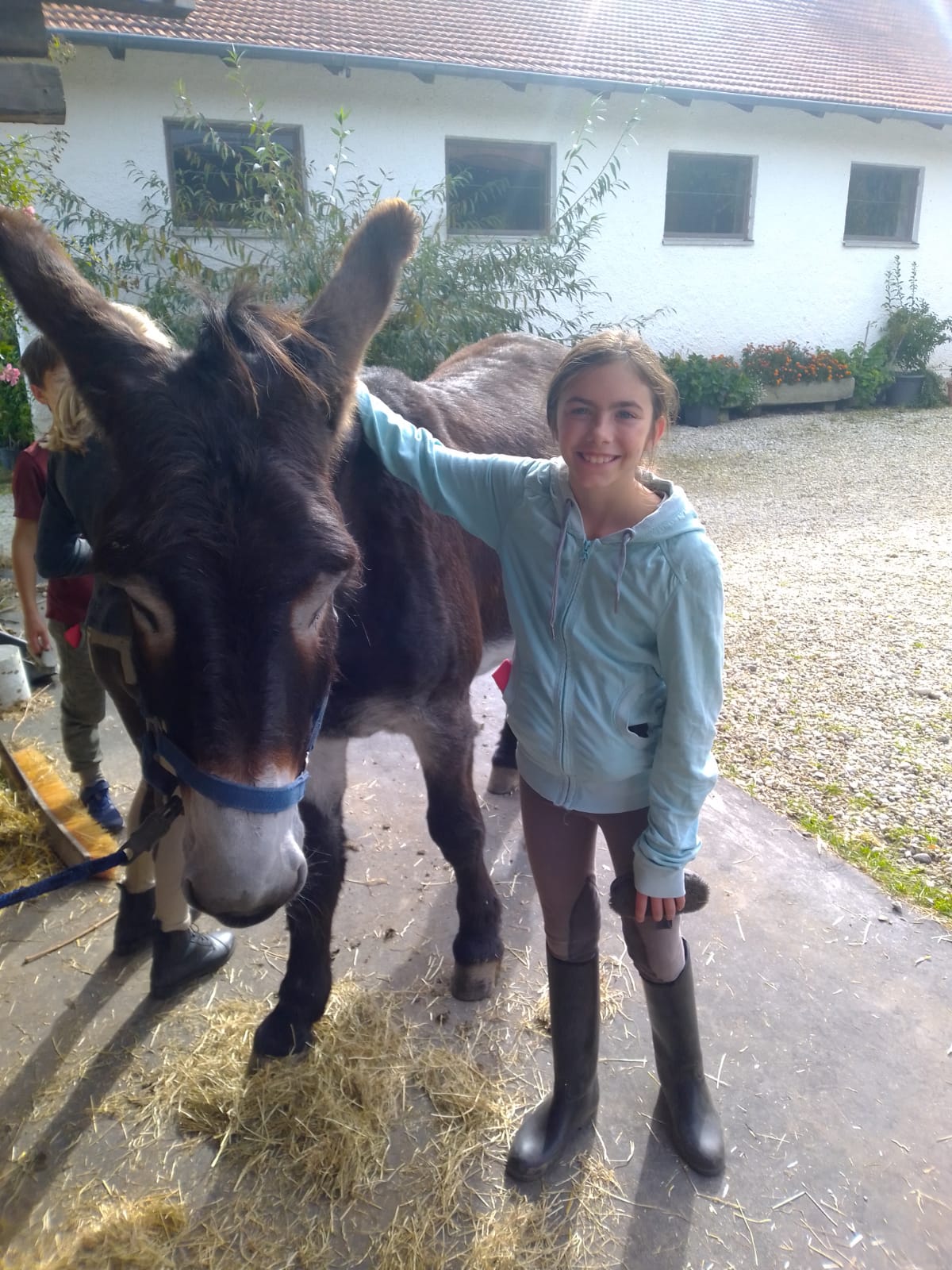 Auch die Klassensprecherwahl fand während des Bauerhofaufenthaltes statt, nachdem Herr Schöttner zuvor ausführlich auf die Aufgaben und Funktion der SMV hingewiesen hatte. Mit großer Ernsthaftigkeit wurde schließlich von den Schülerinnen und Schüler eine demokratische Entscheidung getroffen, die in der Hektik des Schulalltages sicherlich untergegangen wäre. Ein Höhepunkt der Fahrt war der Reitnachmittag. Pferd „Fritz“, Pony „Rosa“ und Esel „Luggi“ drehten mehr oder weniger geduldig ihre Runden in der Reithalle. „Es ist ein tolles Gefühl, auf so einem großen Pferd zu sitzen. Ich hätte nicht gedacht, dass ich mich das traue!“ Dieser Schülerkommentar zeigt, wie wichtig solche Erfahrungen sind. Tierische Mutproben, überstandene Heimwehmomente, rasante Schaukelpartien, gruselige Werwolfrunden, elektrisierende Weidezäune, ungewohnte Funklöcher - und ein frecher schwarzer Kater, der die Schülerinnen und Schüler abends aus der Gutenachtgeschichte bis in ihre Träume verfolgte.