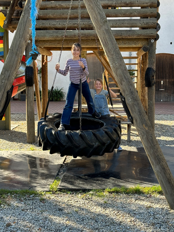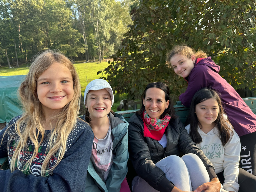 Dank der einfühlsamen Tutoren der Klasse 10 a, Amina und Simon, der umsichtigen Klassenleiter und der guten Versorgung vor Ort, des täglichen Sonnenscheins und genügend Ablenkung im Haus und im Hof verging die Zeit fast wie im Flug. Und als am Mittwochnachmittag der Bus zur Abholung ankam, war die Wehmut, jetzt wieder nachhause zu müssen, für einige fast größer als die anfängliche Sorge am Montagmorgen, sich von den Eltern zu verabschieden. Innerhalb von drei Tagen passiert einfach manchmal so viel. So viel Schönes, Aufregendes, Anstrengendes, Gruseliges, Lustiges und Unvergessliches. Manchmal lernt man in knapp 60 Stunden mehr, als man sich vorstellen kann. Und sich kennenlernen ist ja schließlich auch eine Art des Lernens. Wir hatten auf dem Bauernhof eine richtig schöne Zeit. Unsere Bilder sind unser Beweis!