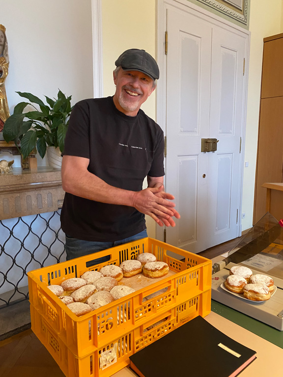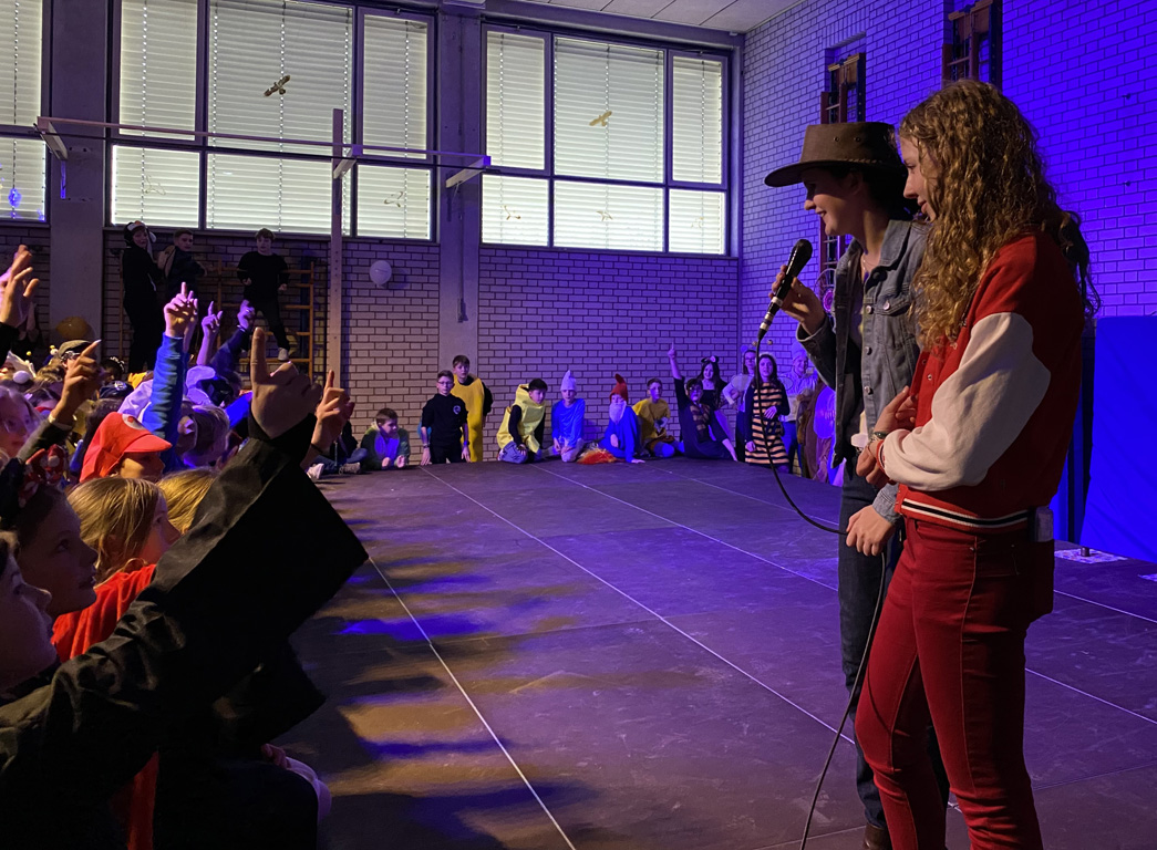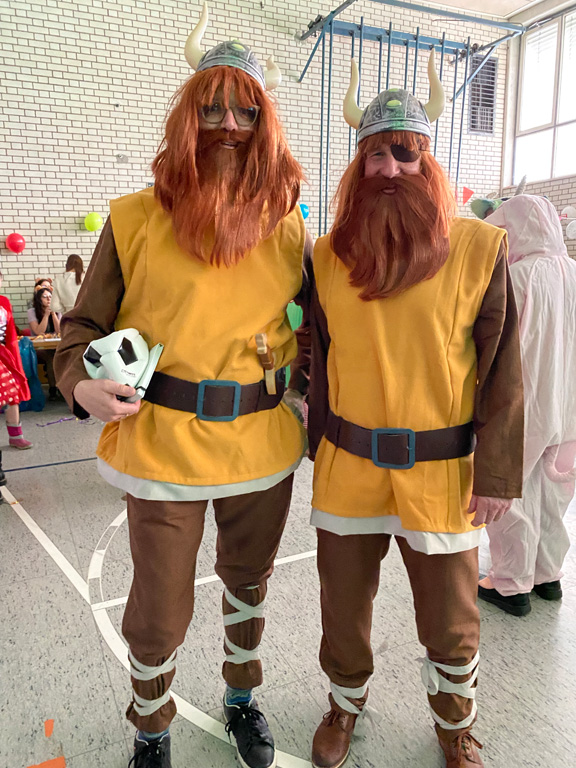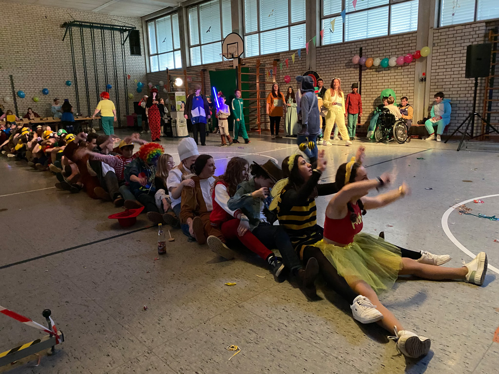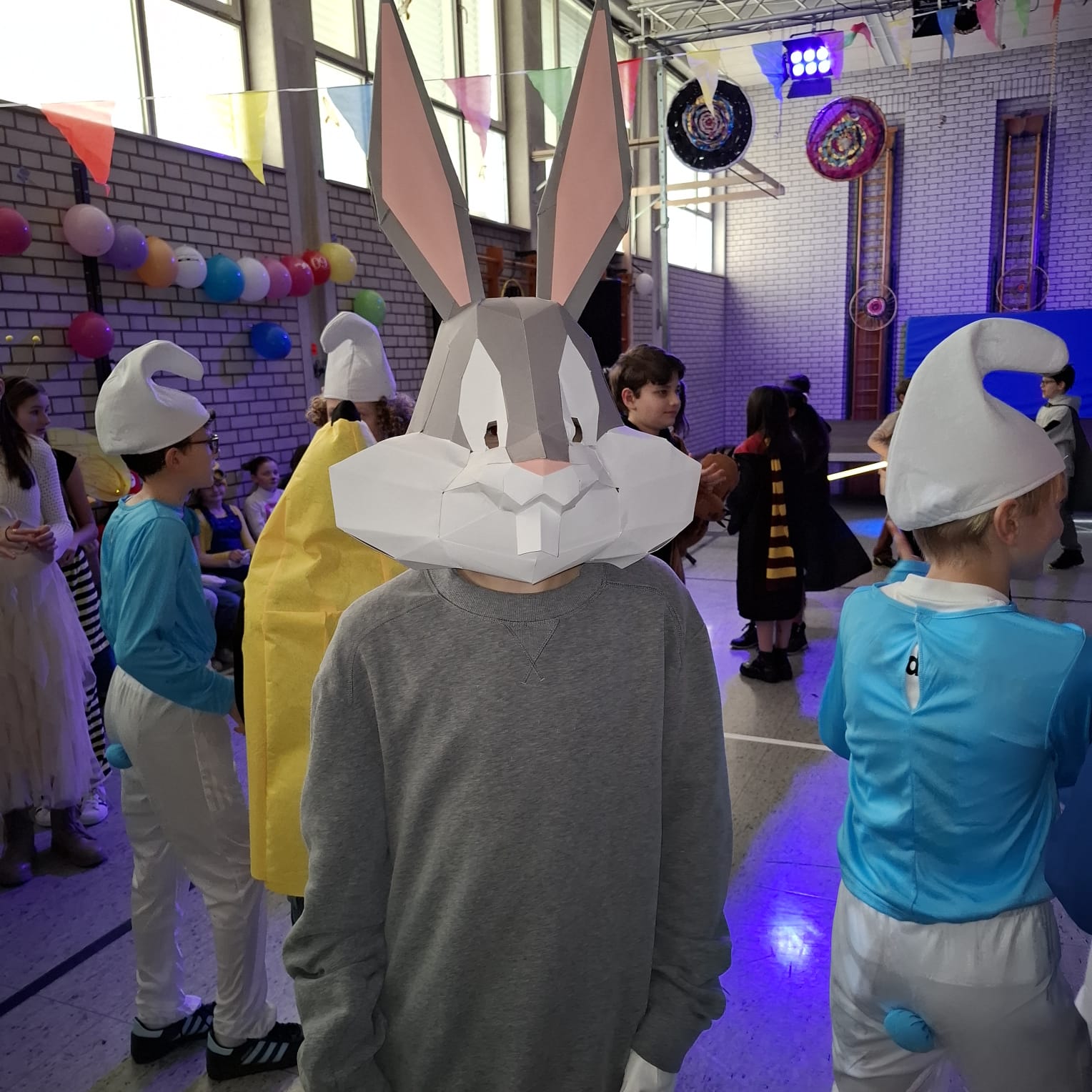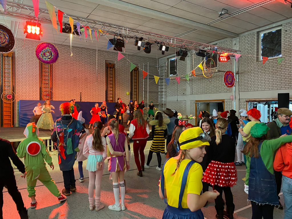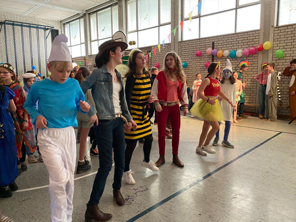 Mit dem Unterstufenfasching am Nachmittag des Unsinnigen Donnerstag erreichte die fünfte Jahreszeit am Auersperg-Gymnasium ihren Höhepunkt. Christian Schöttner alias Halvar (im Bild re.), pädagogischer Unterstufenbetreuer, richtet ihn seit 28 Jahren für die jüngsten Freudenhainer und eine Klasse der Don-Bosco-Schule aus, fleißig unterstützt von den Tutoren der 10. Klasse und vielen Schülerinnen und Schülern der 11. Klasse. Sie hatten die alte Turnhalle dekoriert, für den richtigen Sound und die richtige Musik gesorgt, ein Büffet mit süßen und sauren Leckereien aufgebaut und gestalteten das abwechslungsreiche Programm mit allem, was dazugehört: Limbotanz, Macarena, Polonaise, Schaumkussessen, Bonbonregen, Tombola, Fotobox und Maskenprämierung. Gemäß dem Motto „Kinderfilm und Kinderserie“ hatten viele der närrischen Besucher – darunter auch so manche Lehrerinnen und Lehrer - die Gestalt ihrer Lieblingshelden angenommen: Bugs Bunny, Meister Eder und sein Pumuckl, Mary Poppins, Prinzessin Leia, Super Mario. Es gab schier eine Invasion ganzer Gruppen von Schlümpfen, Minions und Star Wars-Figuren, die bereits vormittags verkleidet im Unterricht saßen und nachmittags ausgelassen feierten.