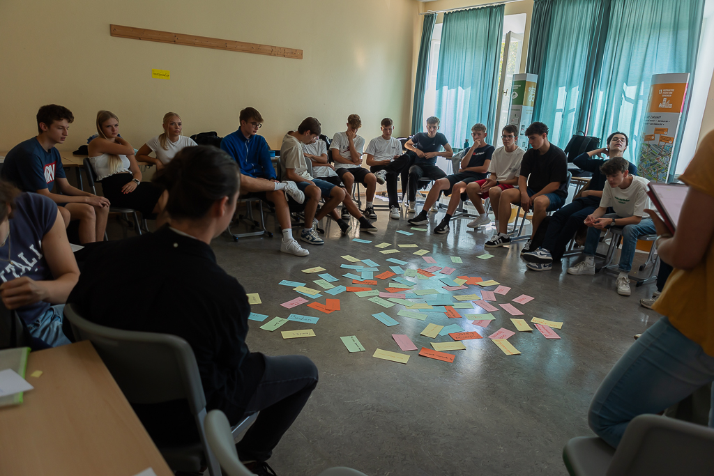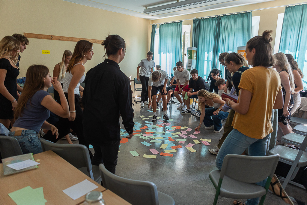 Wissenschaftlich begleitet wird das Projekt von Prof. Andreas Eberth, der auch den Einführungsvortrag für Eltern und Kollegium hielt. Er machte deutlich, dass Bildung neu gedacht werden muss angesichts der multiplen Krisen in der Welt. Auf die zukünftigen Generationen kommen Probleme zu, die nicht mehr einfach mit erlerntem Wissen gelöst werden können. Jugendliche müssen in der Lage sein, eigene Lösungsstrategien zu finden und neue Denkwege zu beschreiten. Für die Schule ist es dabei wichtig, diesen Raum zur Verfügung zu stellen, in dem neben Faktenwissen und Kompetenzen in der Mathematik oder im Fach Deutsch auch Selbstwirksamtkeit erfahren werden kann.
