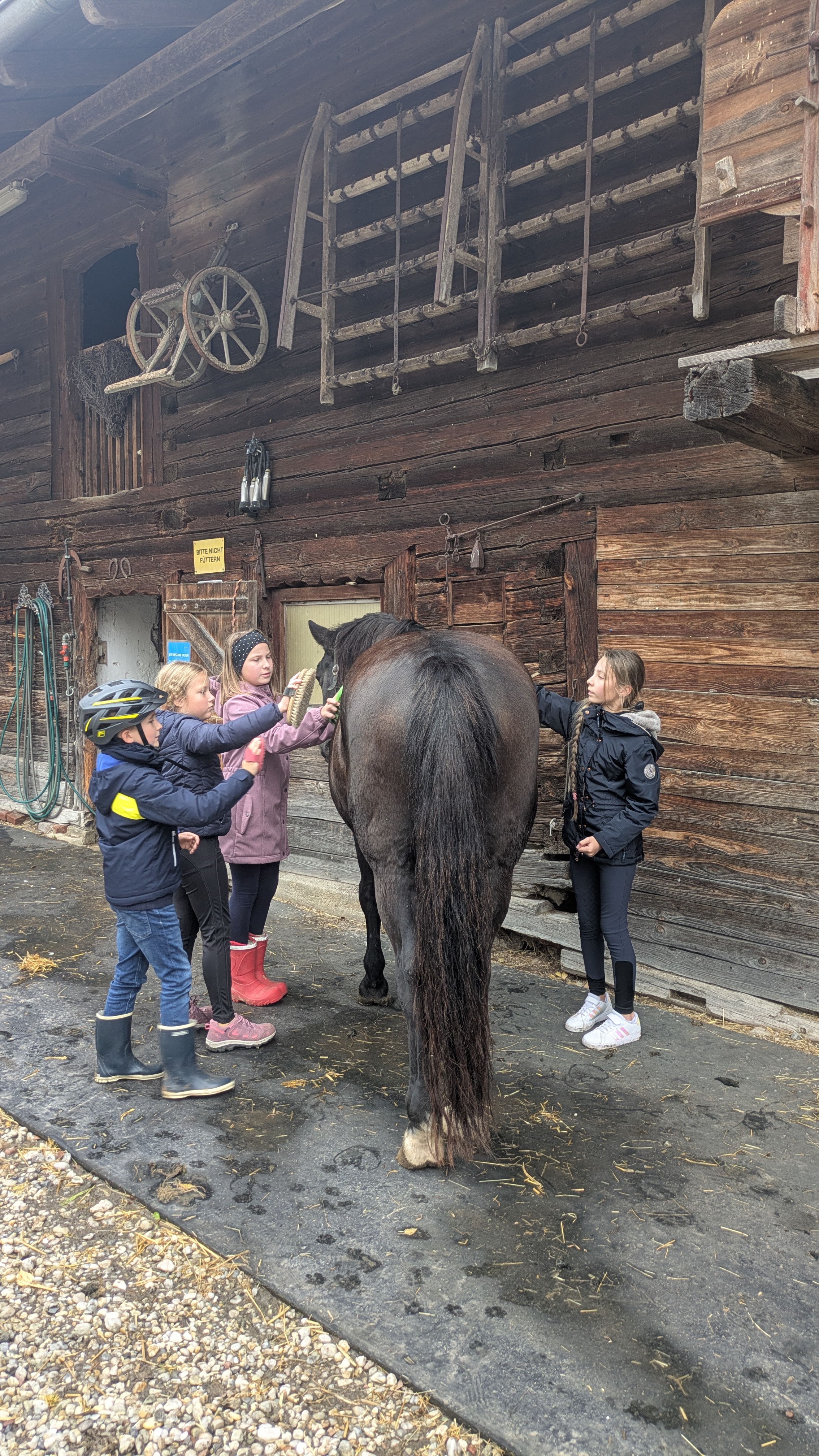 PXL 20251007 072951007MPAls erste der drei neuen 5. Klassen verbrachte die 5b drei abwechslungsreiche Kennenlerntage auf dem Bauernhof der Familie Mödder in Wiesbach bei Gangkofen. Die Schülerinnen und Schüler wurden von den beiden Lehrkräfte Janina Fast und Henrik von Rosenberg-Lipinsky sowie den Tutorinnen Nina, Anna und Hanna aus den 10. Klassen begleitet. Das bunte Programm überzeugte selbst die zutiefst Heimwehgeplagten, über sich hinauswachsen durften. Die Kinder erfreuten sich besonders an den vielen Tieren, die sie streicheln und auf den Arm nehmen durften. Die überwiegende Mehrheit genoss den aufregenden Reitnachmittag, an dem sie auf Esel und Pferd reiten durften.