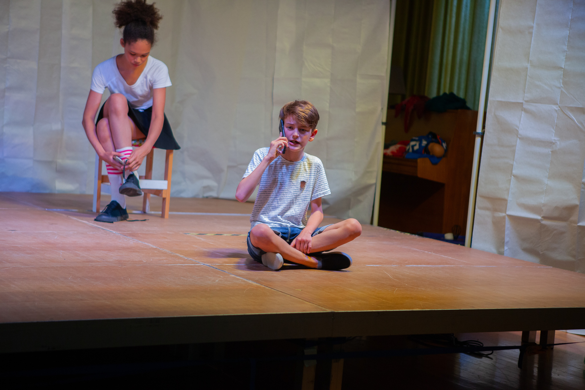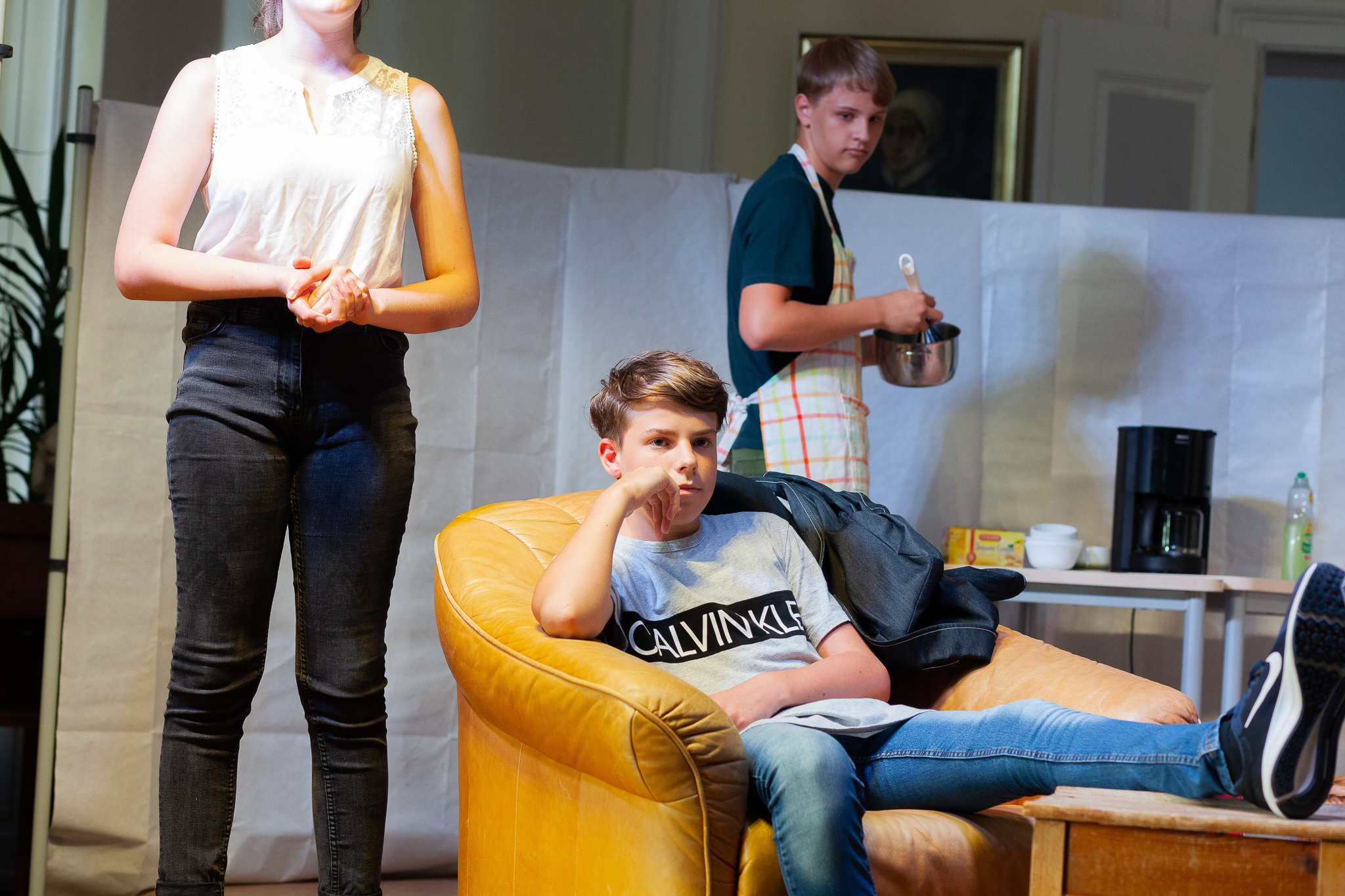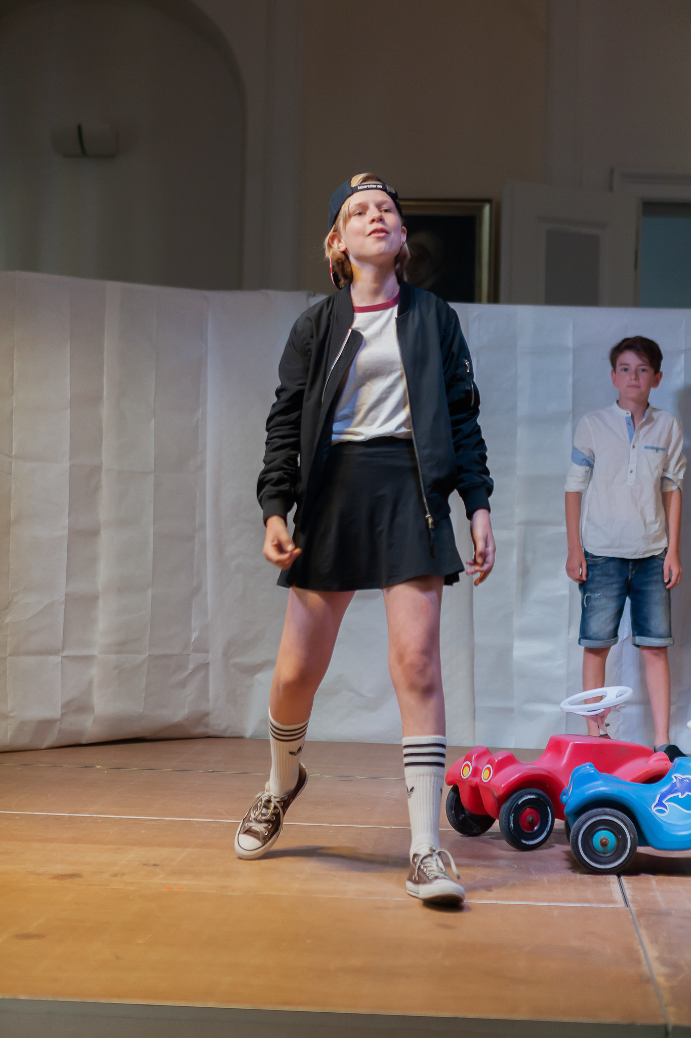 Mädchenwelten - Jungswelten. Boys and girls. Beide stehen sich im Stück immer wieder gegenüber. Während sich viele Szenen ganz um die Jungs drehen, sind die Mädchen in anderen unter sich. Ab und zu kreuzen sich ihre Wege, beispielsweise wenn sie als Klasse vor ihrer resoluten Schuldirektorin (Franziska Schubert) und ihrem Lehrer (Elias Schubert) stehen. Bei allem Interesse am anderen Geschlecht wird deutlich: Boys und Girls kommen nicht zusammen.