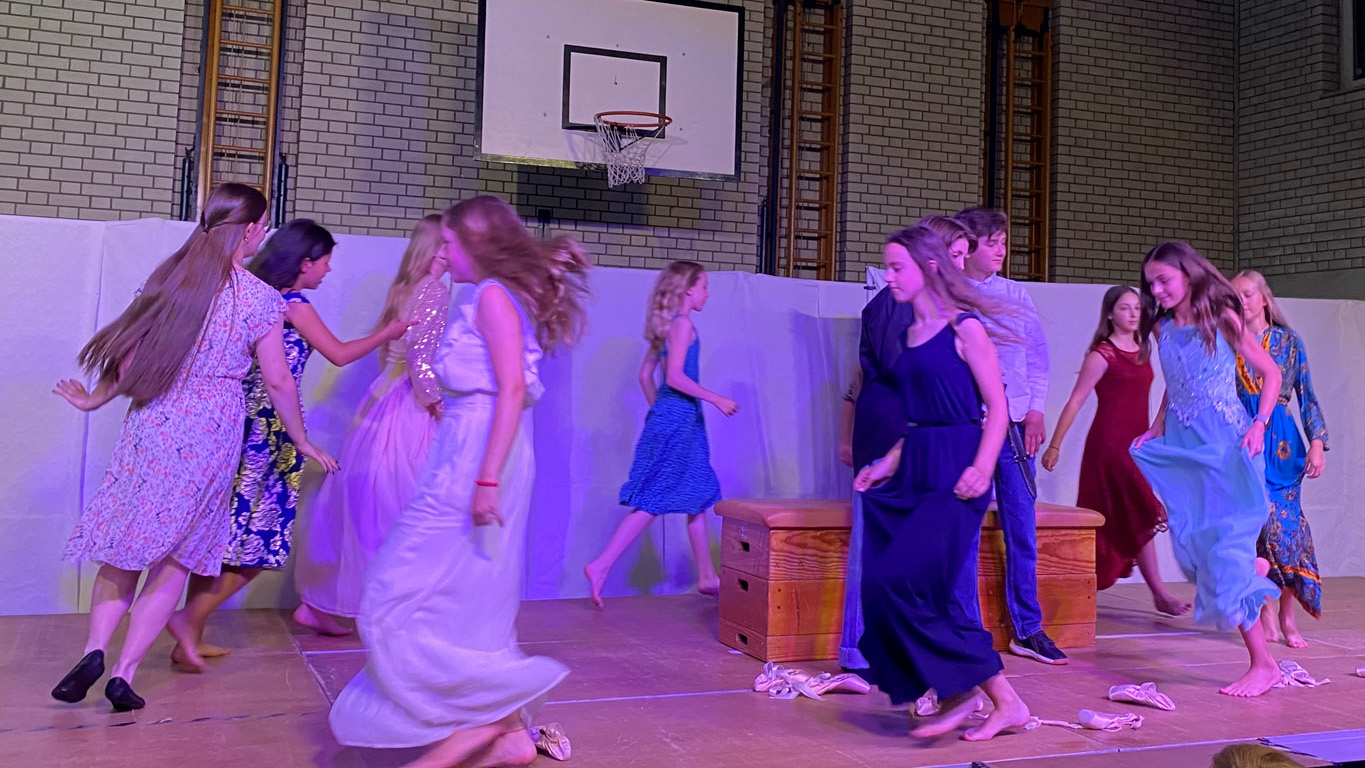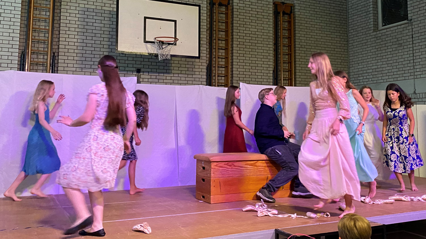Unter der Leitung von Ursel Kraft bewies die Theatergruppe des Gymnasiums bereits zum zweiten Mal in diesem Schuljahr großes Geschick, die Zuschauer mit vielen kreativen und witzigen Ideen in ihren Bann zu ziehen. Die Darsteller überzeugten mit erkennbarer Spielfreude und bezaubernder Natürlichkeit. Mit viel Liebe zum Detail bei der Kostümauswahl, eingängiger Musik zwischen den Szenen und einer wirklich geglückten Rollenbesetzung wurde ein Märchenfeuerwerk gezündet, das die Herzen der Zuschauer erleuchten ließ:
