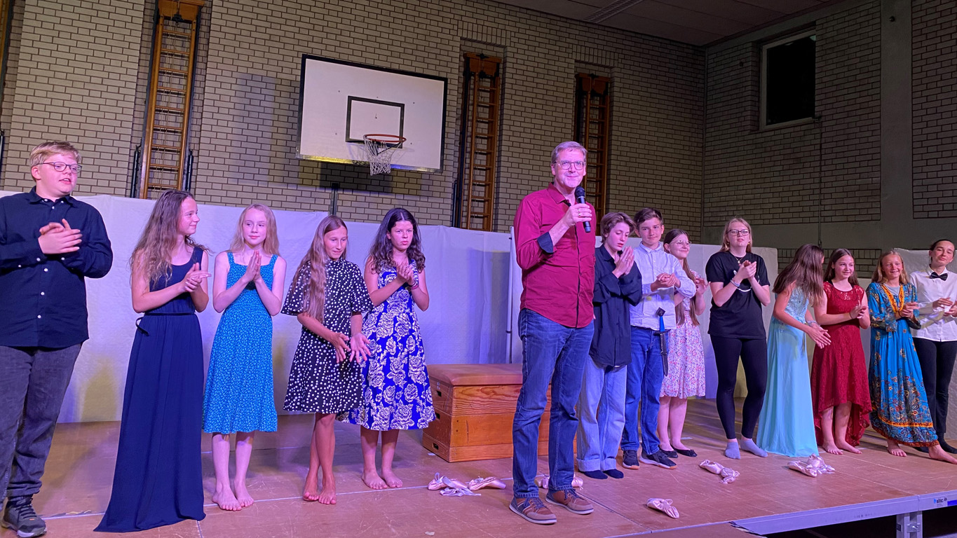 Wieder einmal ist es der Theatergruppe der Unter- und Mittelstufe des Auersperg Gymnasiums Freudenhain mit dem Stück „Psst! Märchenstunde“ am vergangenen Dienstag gelungen, ein wunderbar unterhaltsames Stück zu präsentieren. Die Freude ist den jungen Darstellenden anzusehen, als sie die modernen und kreativen Märchenversionen auf die Bühne zaubern.