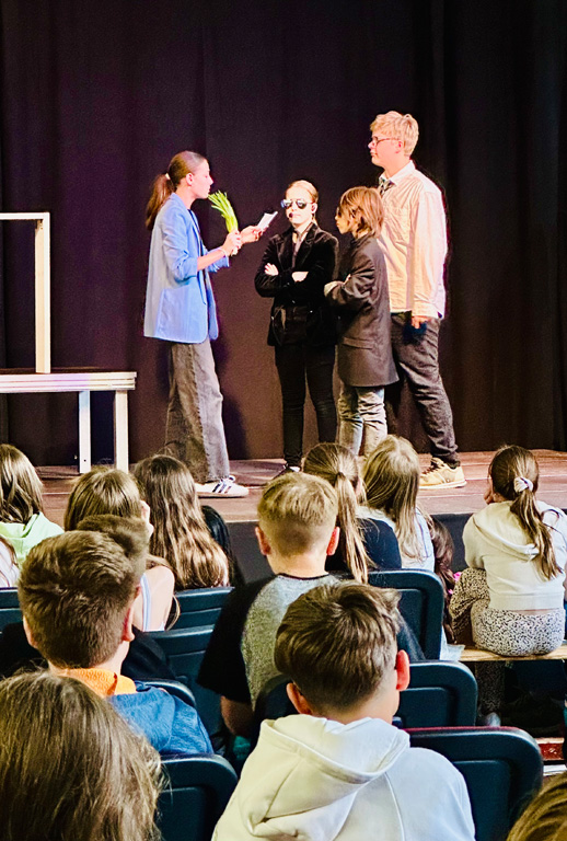 Es herrschte große Neugierde in Freudenhain: Was wird die Leitung der Theatergruppe Unter-/Mittelstufe sich dieses Jahr wieder einfallen lassen? Welcher Roman wird denn dieses Mal als Vorlage für die Aufführung dienen?
