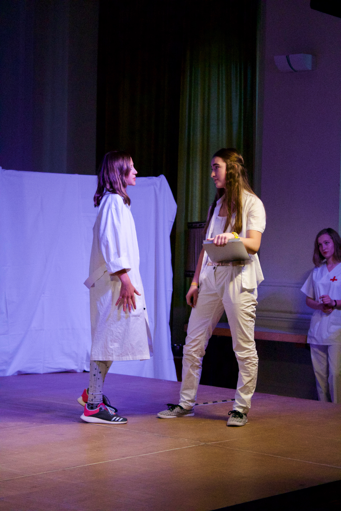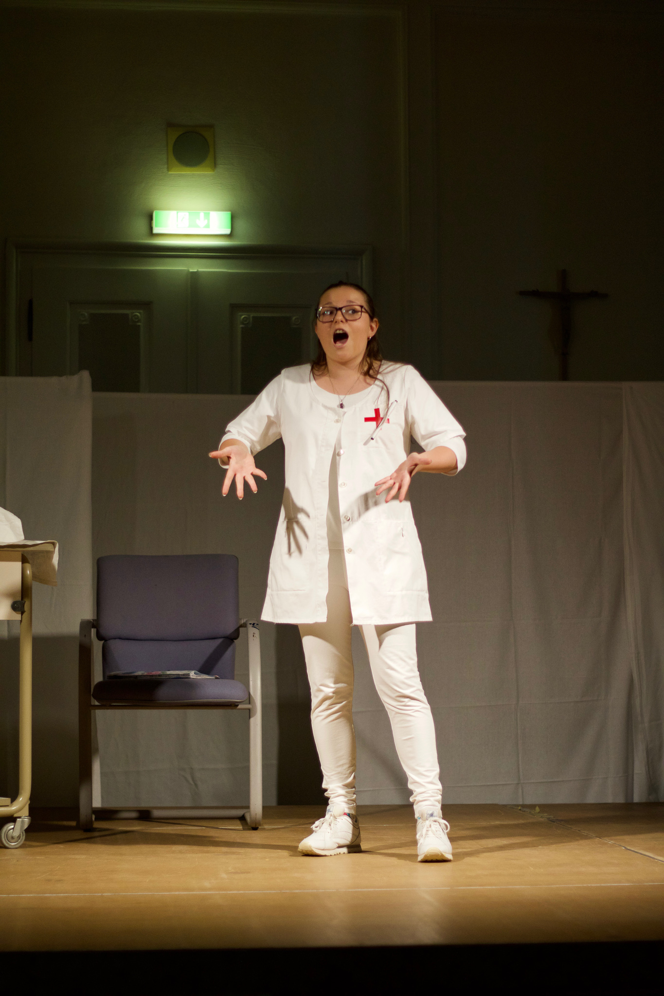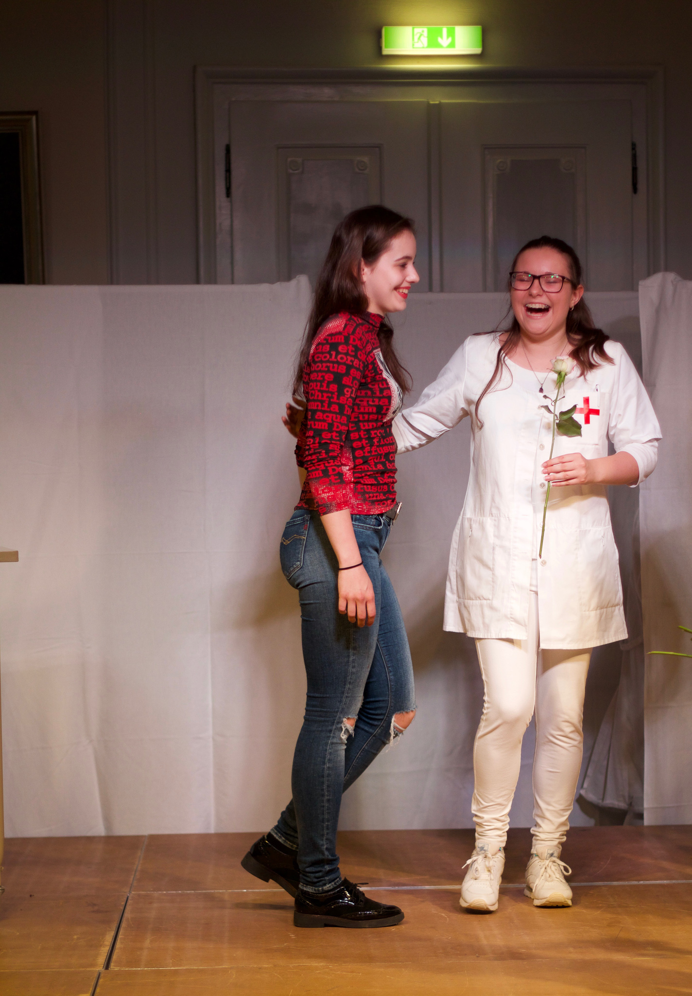 Zum Gelingen tragen auch der nette Pfleger Douwe (Jan Guist) und die Krankenschwestern Fiona Fuchs, Hannah Schill, Nora Aits und Jasmin Janeck sowie Doktor Sara (Marlene Weindl) bei, die nicht nur den Kllinikbetrieb aufrechterhalten, sondern mit den Szenenwechseln mit Emila Perkins flink über die Bühne wuseln, um Requisiten zu bringen oder zu entfernen. Mit dem richtigen Sound geht alles noch besser, zeigt Fiona Fuchs, die zu flotter Musik schwungvoll über die Bretter fegt. "Das Leben ist wie eine Krankenhausserie, viel Herz und Blut", resümiert Fitz und beschließt, Ärztin zu werden.