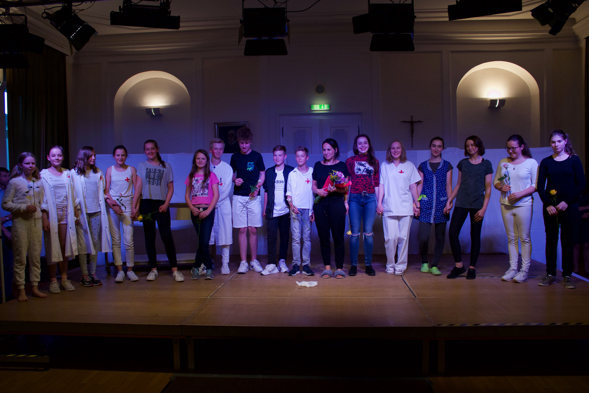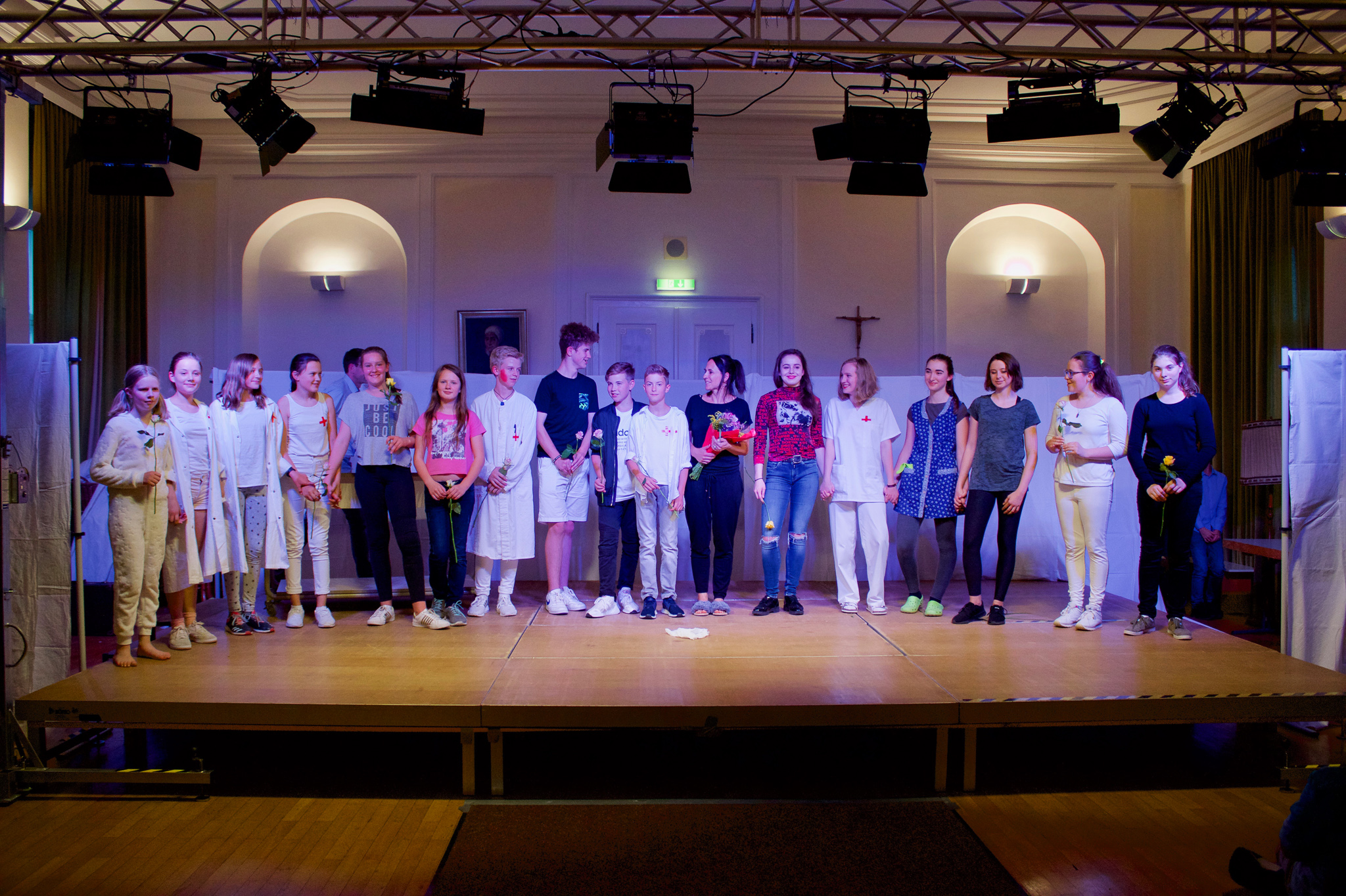 "Wir haben geblutet, passend zum Stück", resümierte Kraft. Während der Probephase mussten die Schüler immer wieder für Schulaufgaben lernen. Das Jugendbuch der niederländischen Autorin Anna Woltz habe sie so begeistert, dass sie es zu einem Bühnenstück mit Rückblende umschrieb. Es passe zur Mittelstufe. "Das Leben ist immer Herz und Blut. Manches schmerzt und geht vorüber", laute die Botschaft. Dies empfänden Kinder und Erwachsene so. Zusammenhalten sei wichtig. Man komme leichter über Schweres hinweg, wenn man weiß, dass es allen so geht.